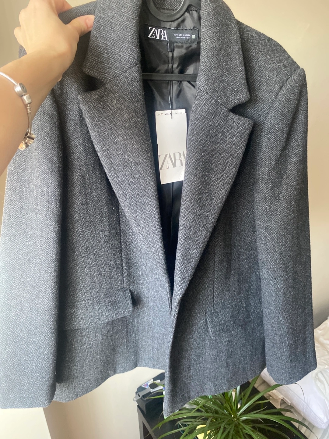 84Grey herringbone blazer. Size medium. Made in Vietnam. With wool. Single button closure. Unworn with tags.Excellent for spring