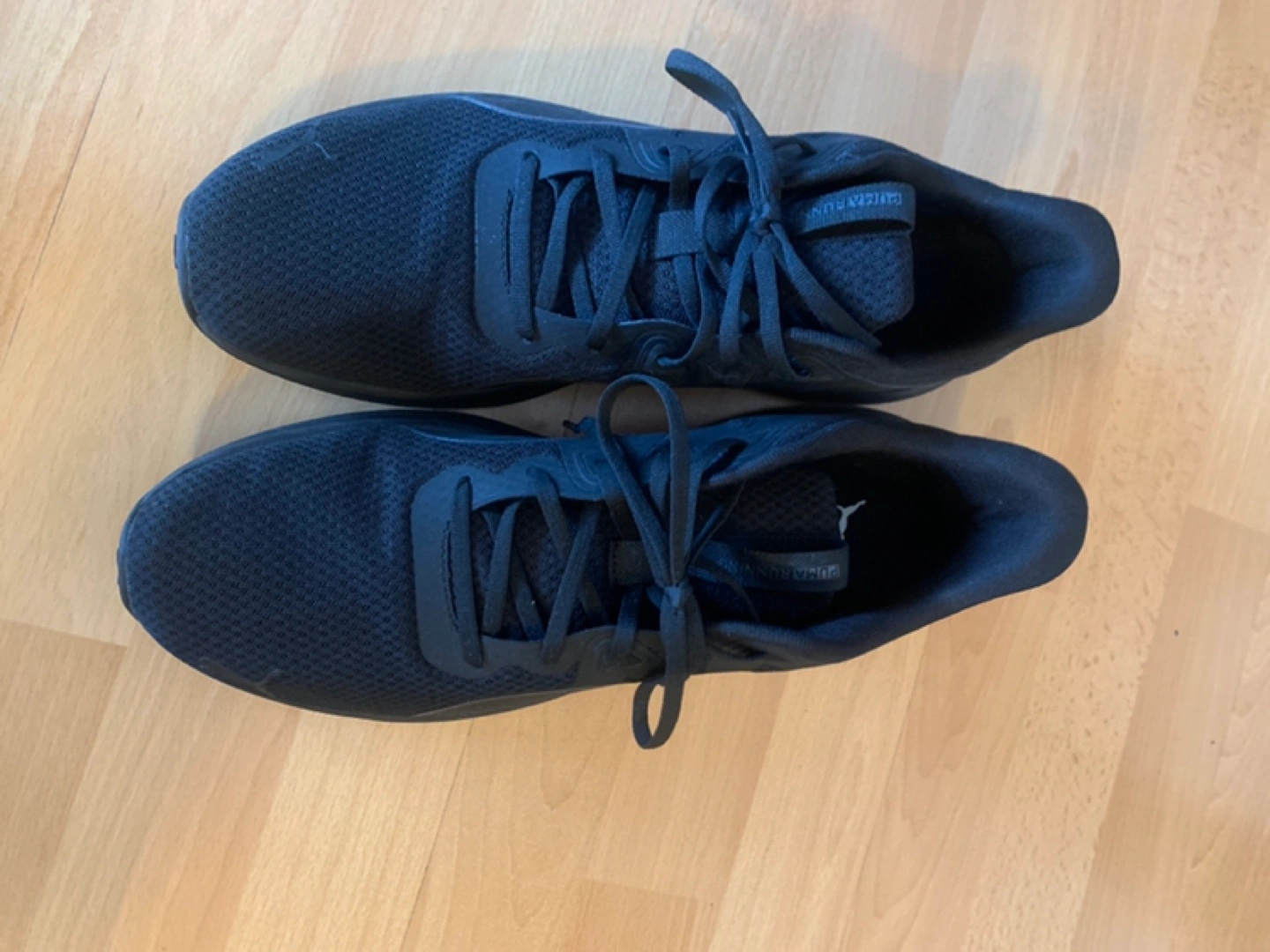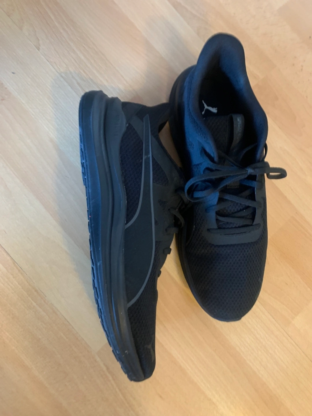 Pair of black Puma running shoes. My son just used a once . Lightweight and comfortable. Great for everyday wear or workouts.