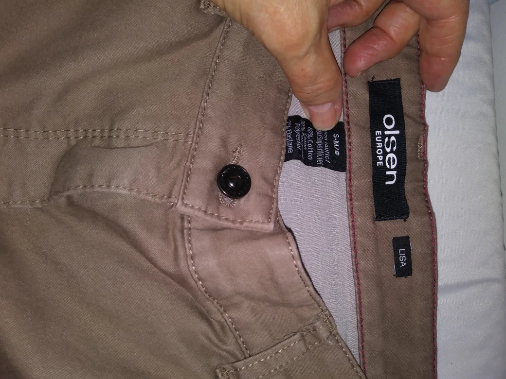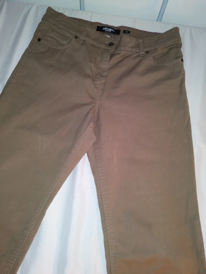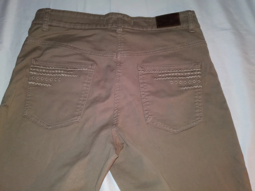 1000+Women's khaki coloured pants. Size small. Embroidered detailing on back pockets. 98% cotton, 2% elastane. mid -waist. in seam. 31"