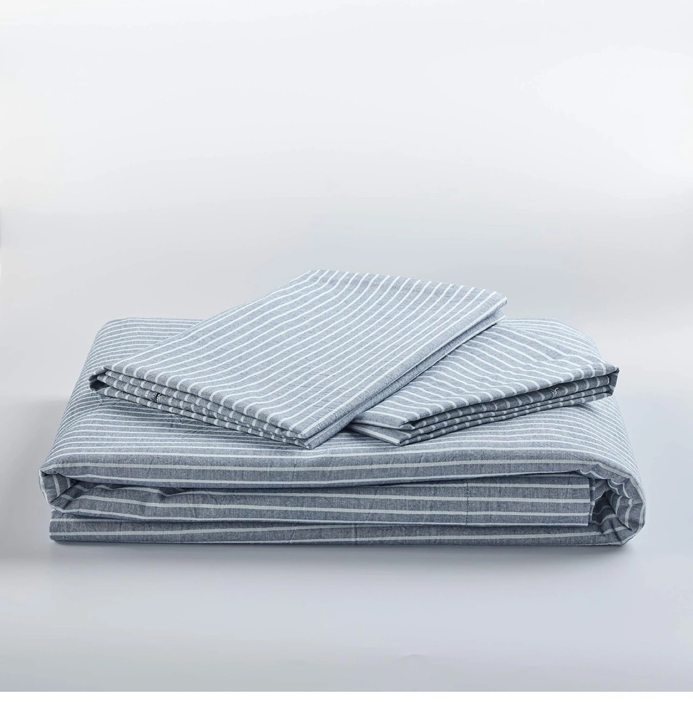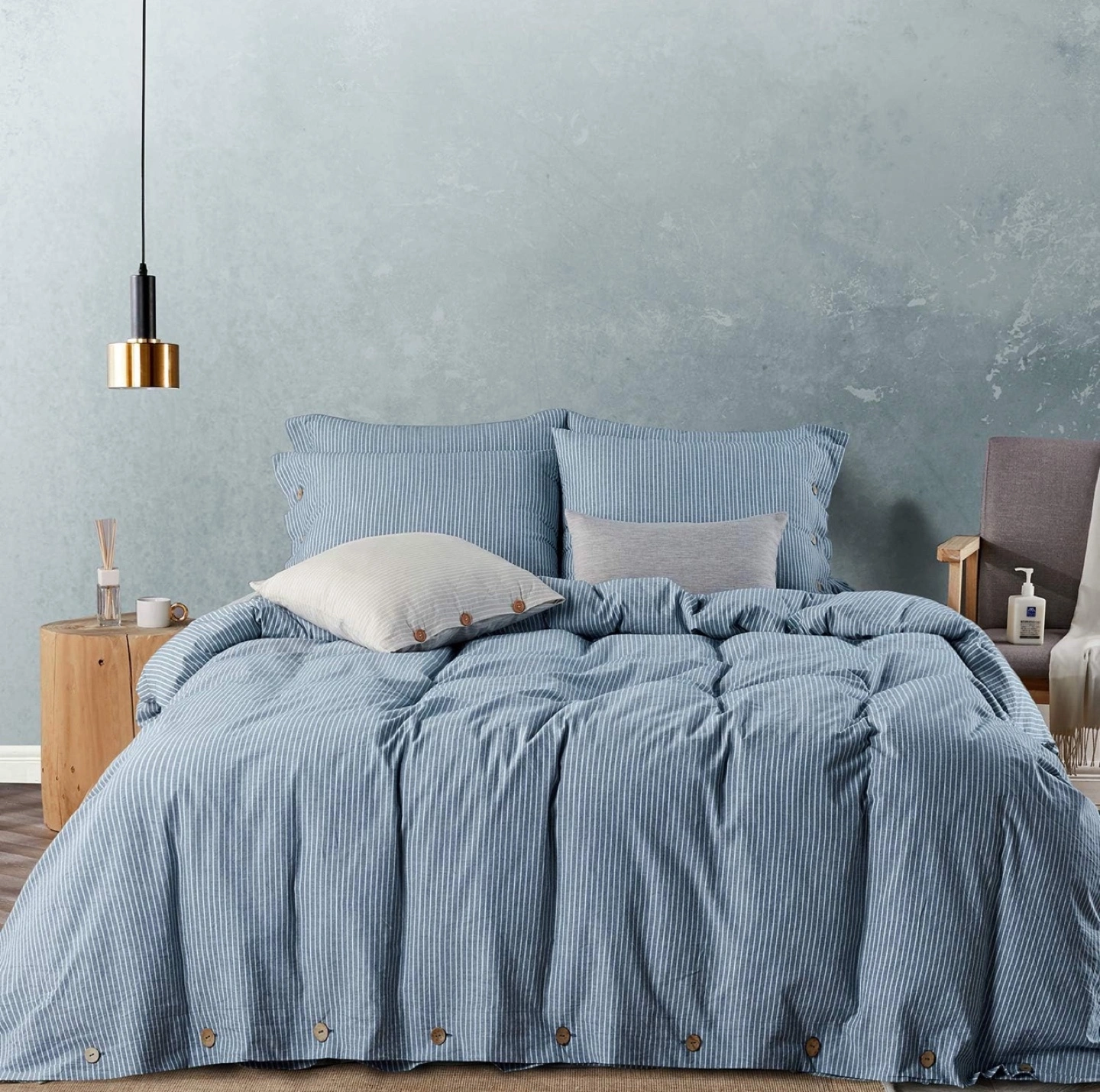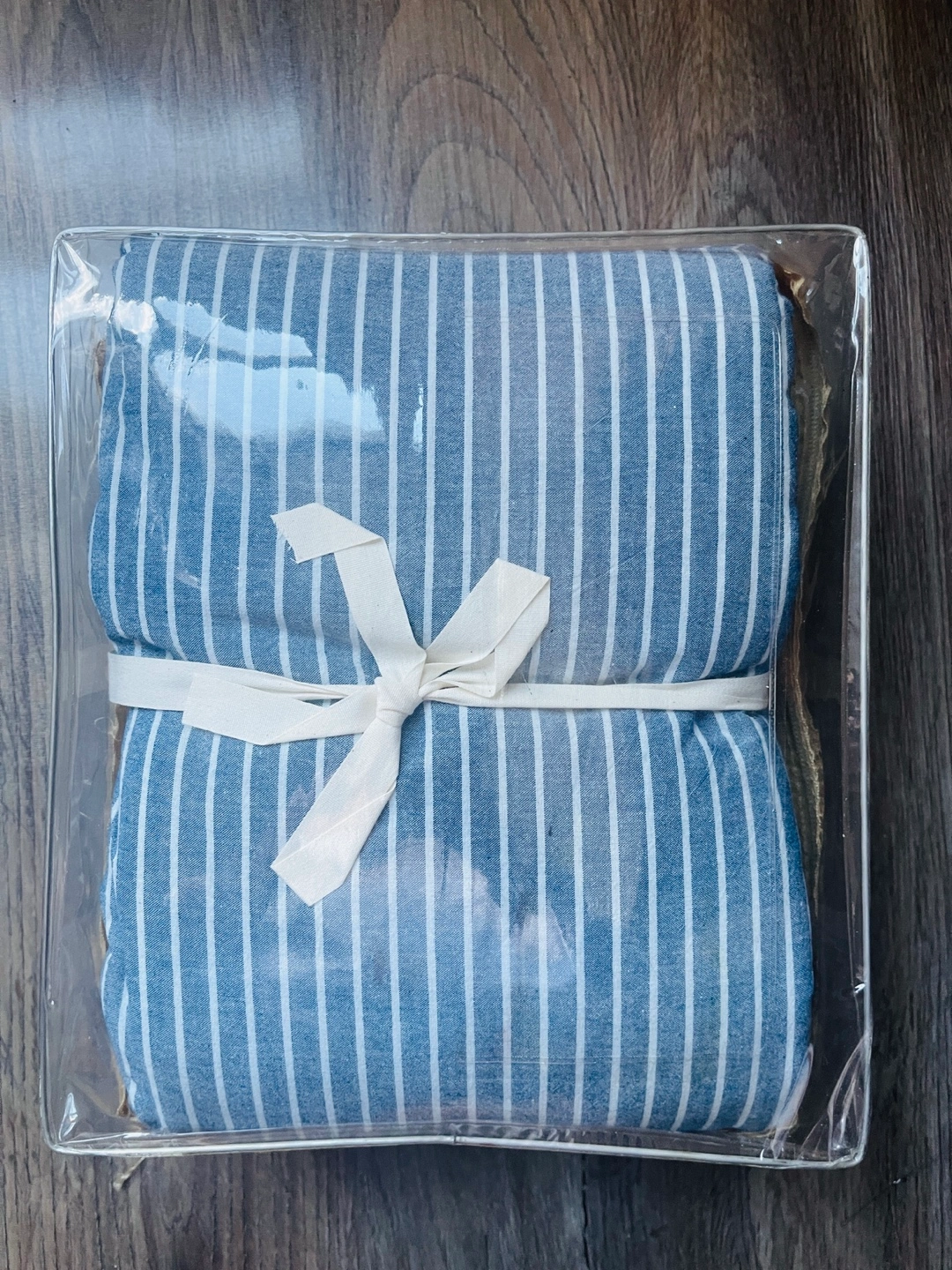 908NEW Queen(90"× 90") Pinstriped 100% Washed Cotton Duvet Cover Set, 3 Pieces Ultra Soft Bedding Set with Buttons Closure Super soft fabric, one of my faves so far! Pick up near Yonge Eglinton subway