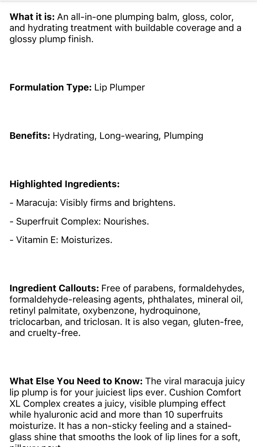 Plumping lip balm, gloss and colour. Hydrating with buildable coverage and a glossy finish. Long-wearing. Vegan and cruelty-free. Bought too many, didn’t like the shade anymore Absolutely loved this gloss as this would have been my 5th one.