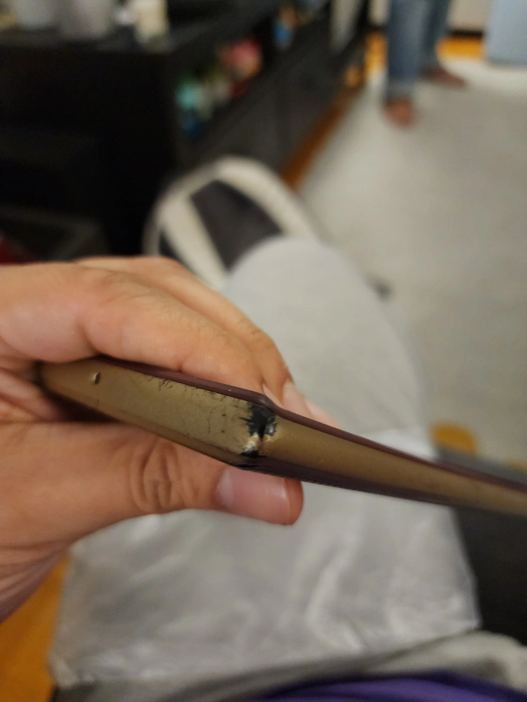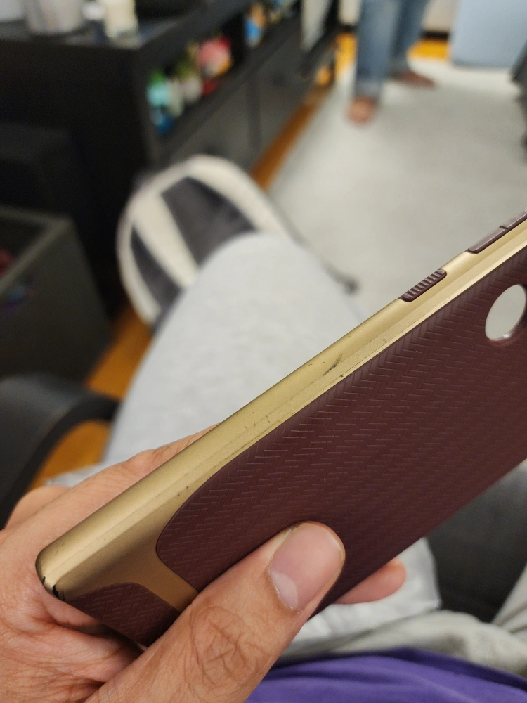 Pre-owned Samsung Galaxy S22 Ultra Neo Hybrid phone case. Maroon and gold. Significant wear and tear.