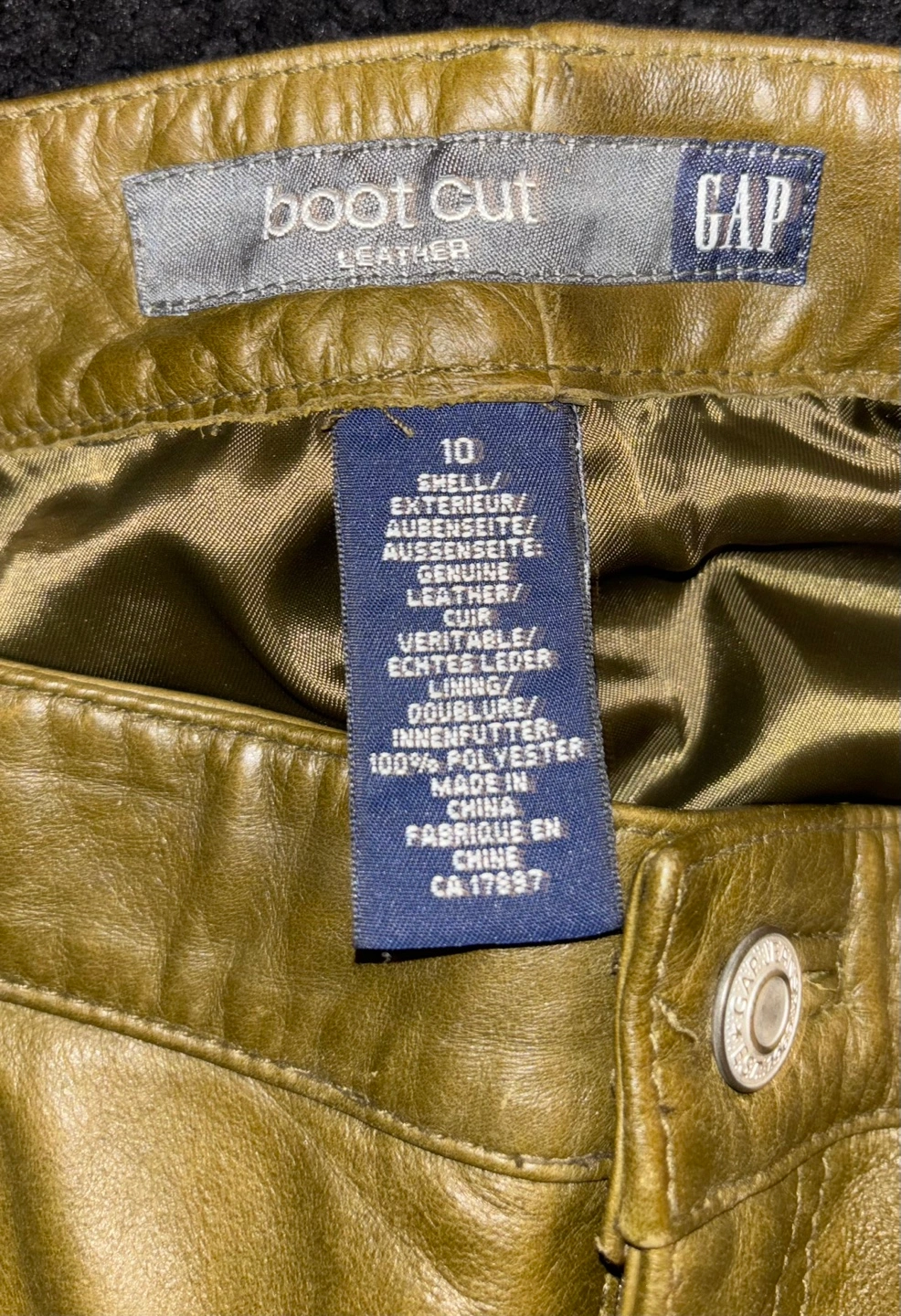 Gap Olive Green Leather Bootcut Pants - Size 10