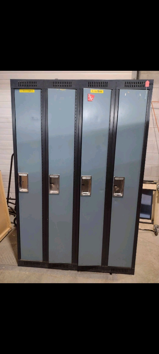 Good condition, minor wear. Individual numbered locks. Ideal for storage. Blue lockers. 4 column, 4 doors. 1 set available. Measure 48" wide x 18" deep x 72" tall. $460 each plus HST. Pick up near Gage and Belmont in Kitchener Monday-Friday from 12-5 p.m. By appointment. Check out my other ads!