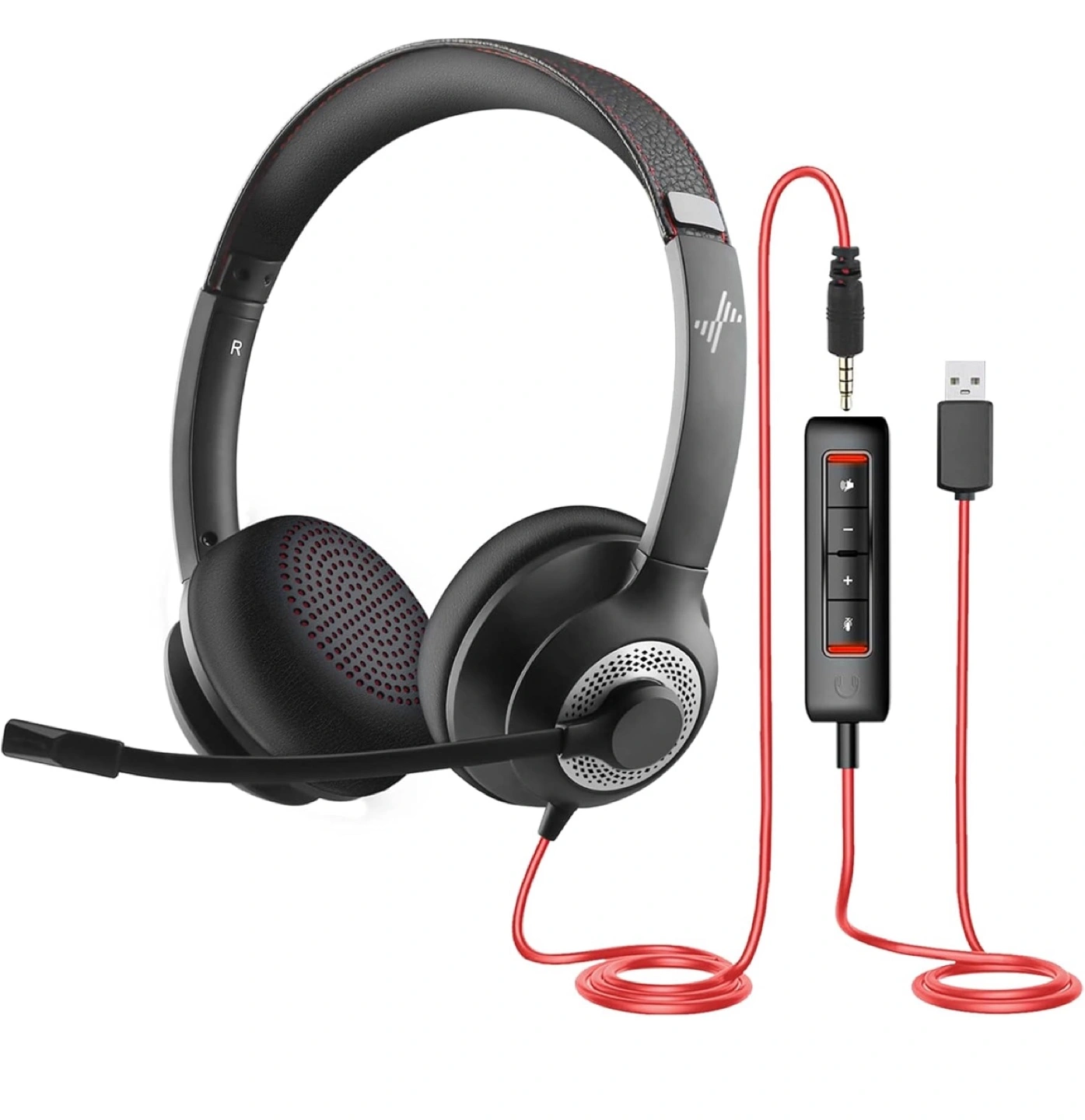 Comfortable over-ear headphones. Features a flexible microphone and adjustable headband. USB and 3.5mm connection. Includes inline controls.
