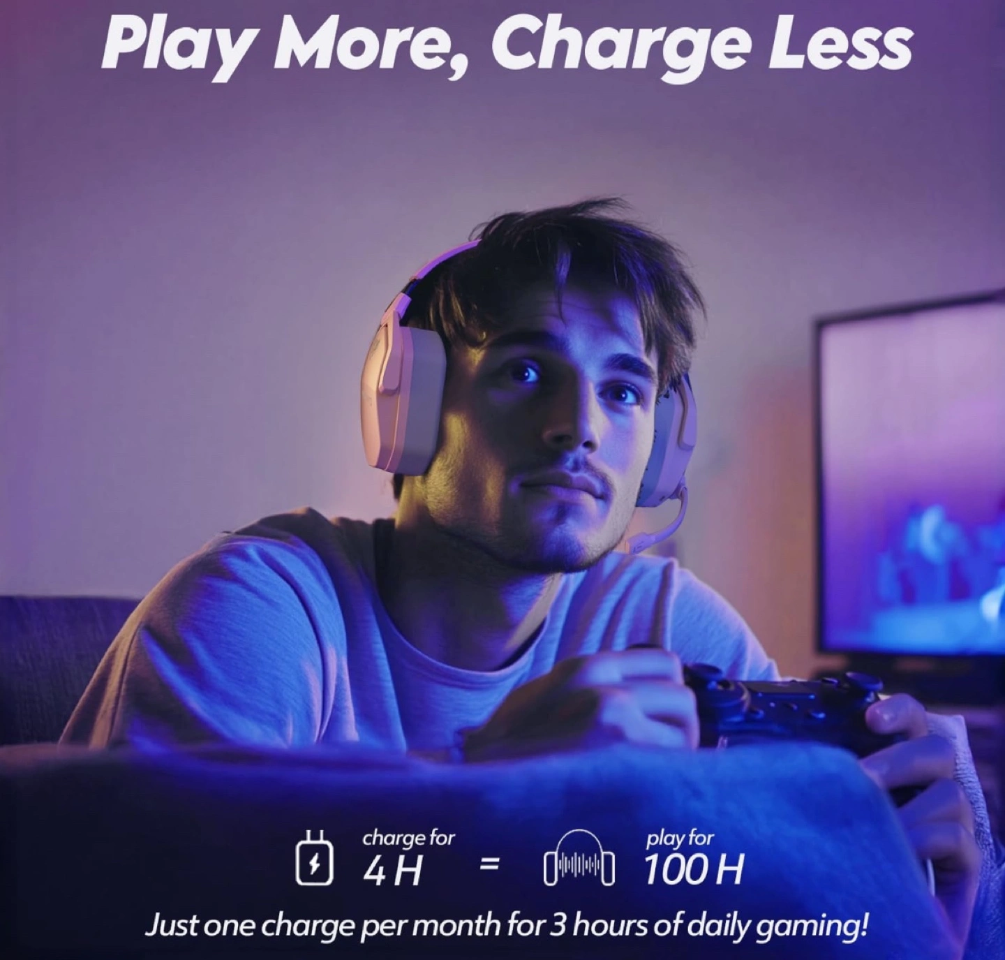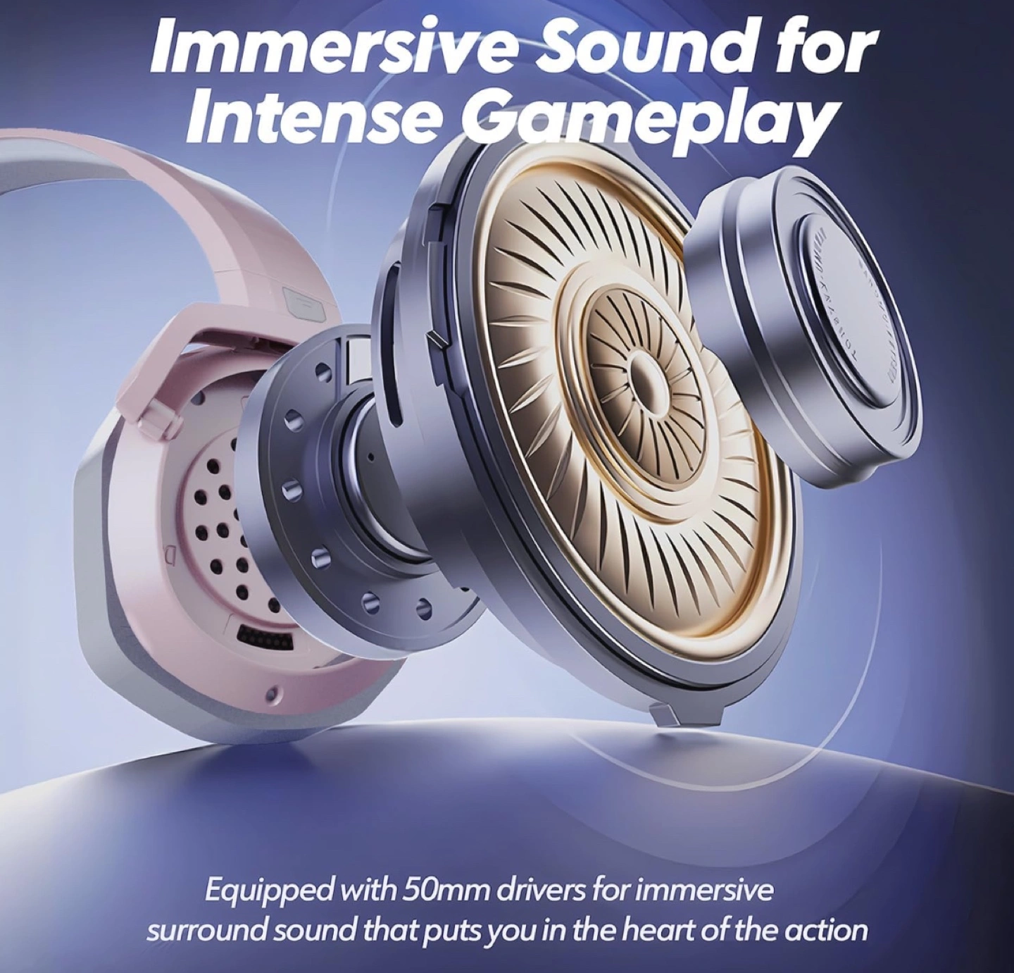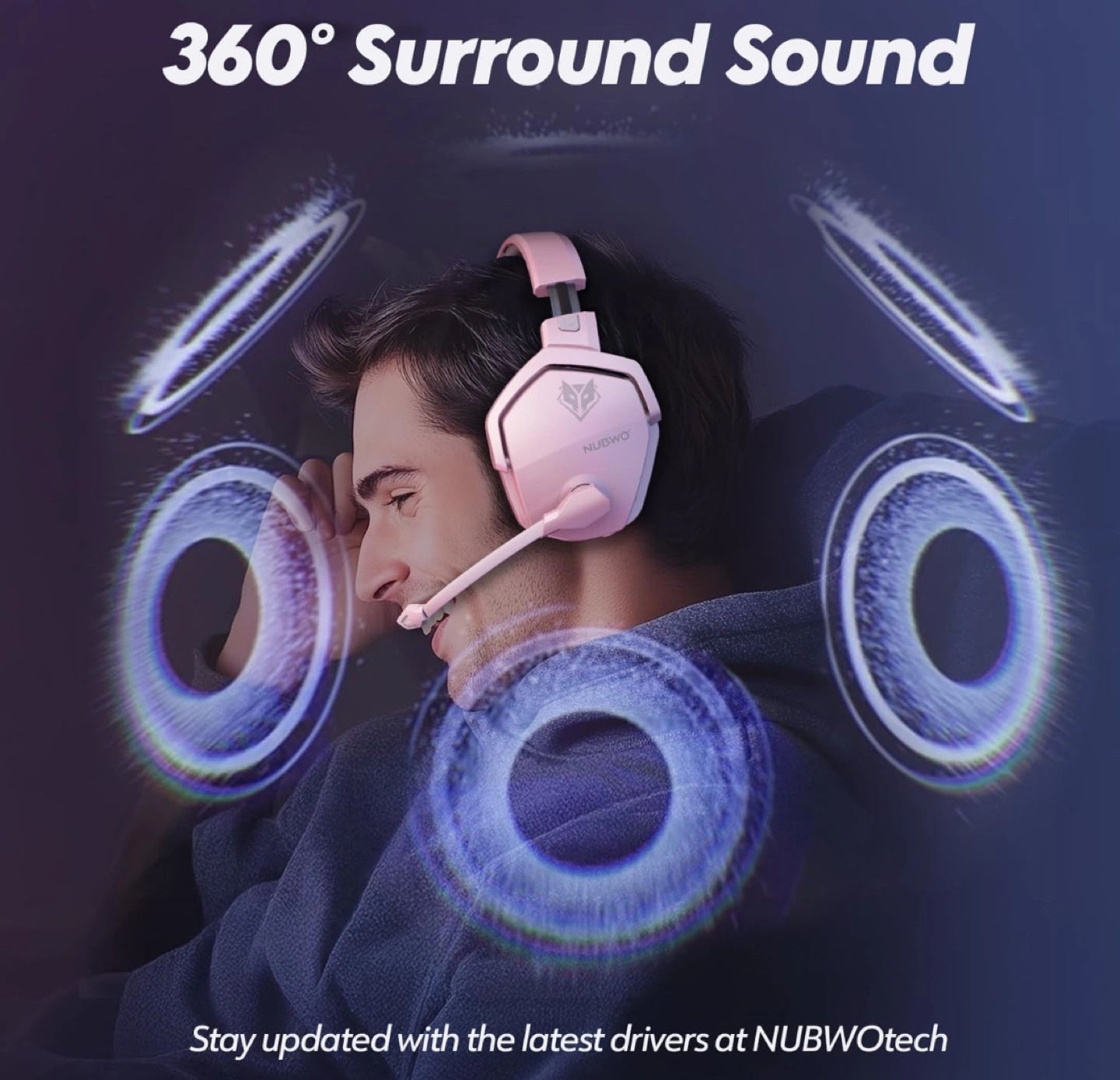 106Wireless gaming headset. Pink colour. Features 50mm drivers for immersive surround sound. Long battery life; 4 hour charge for 100 hours of playtime. Includes USB wireless dongle.