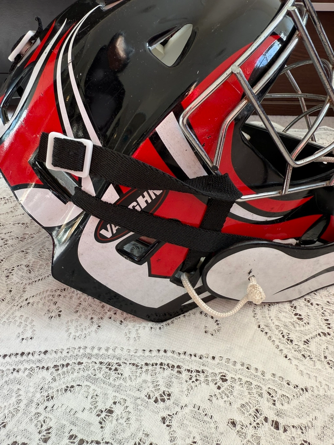 1000+MEETING LOCATION: Scarborough Town Centre Mall only ***Youth Street Helmet ***Black, red, and white colour scheme ***Includes cage and chin strap CONDITION: Shows some wear but functional