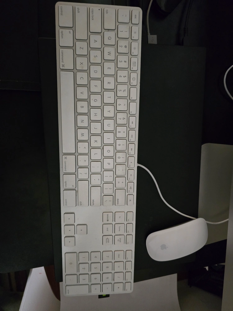 White Apple wireless keyboard and mouse. Includes an Apple iMac. Great for home or office use. Sold as a bundle.