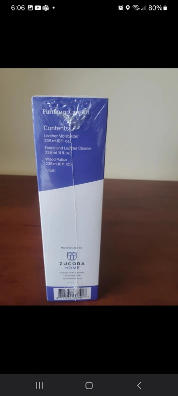 New furniture care kit. Includes leather moisturizer, fabric and leather cleaner, wood polish, and cloth. Perfect for maintaining your furniture.