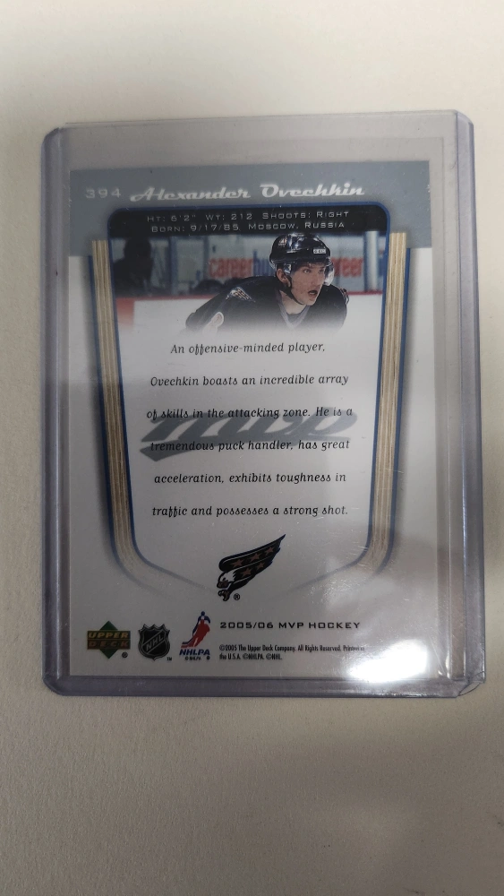 547Alexander Ovechkin rookie card. 2005-06 MVP Hockey. . Capitals LW.