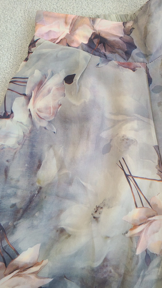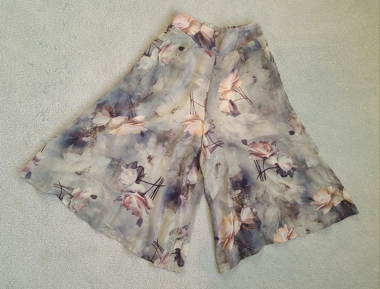 Lightweight high-waisted culottes. Elastic waistband. Floral print. Flowy fabric. Great for spring and summer.