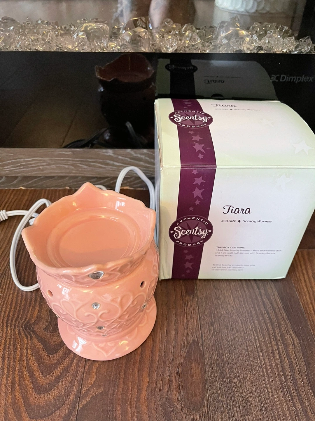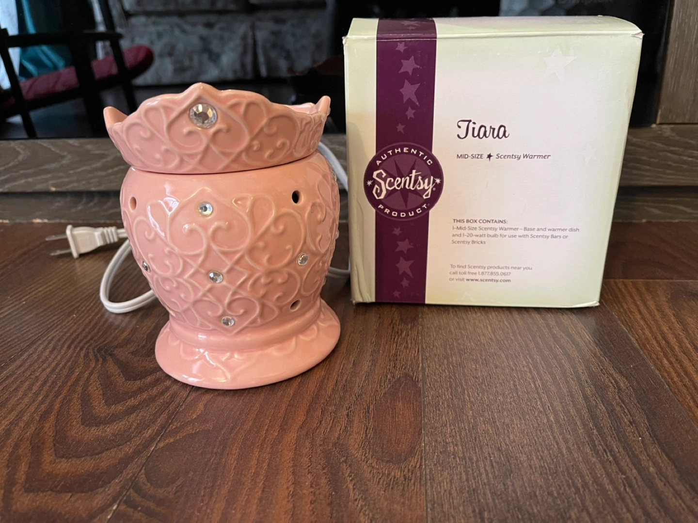 Pink Scentsy warmer. Mid-size warmer. Features a crown design and rhinestones. Includes box.