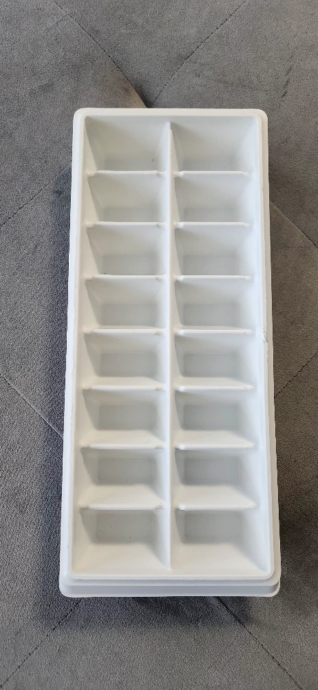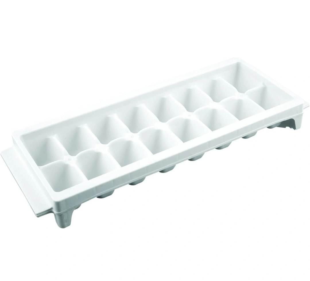 Classic white plastic ice cube tray. Holds sixteen ice cubes. Durable and easy to use. Great for home or bar.
