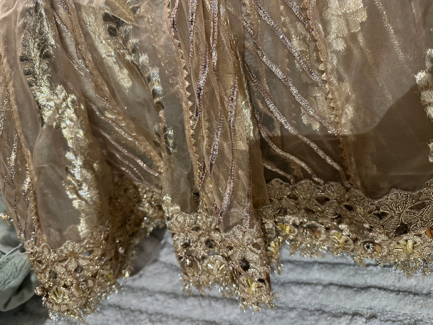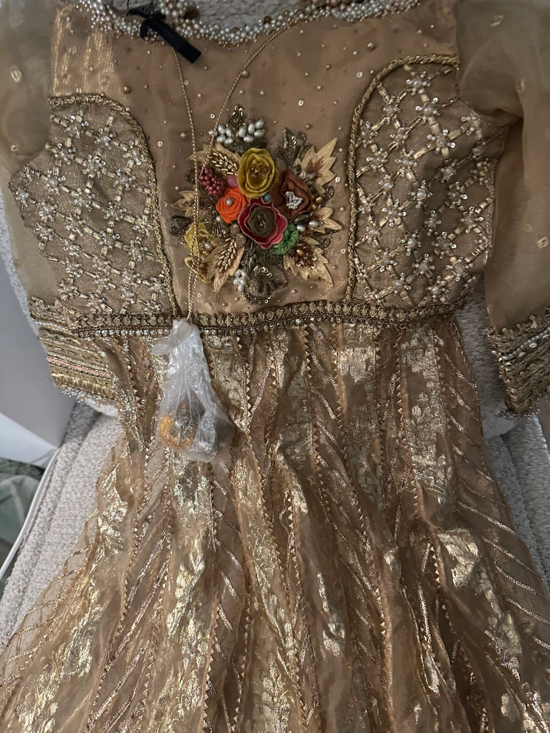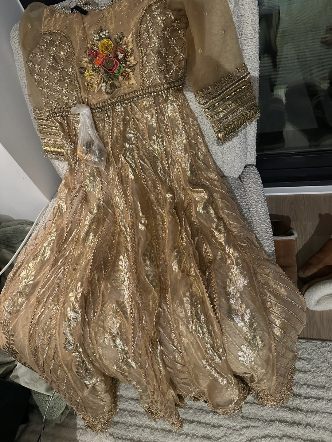 Gorgeous Gold Embroidered Pakistani Gown Kameez