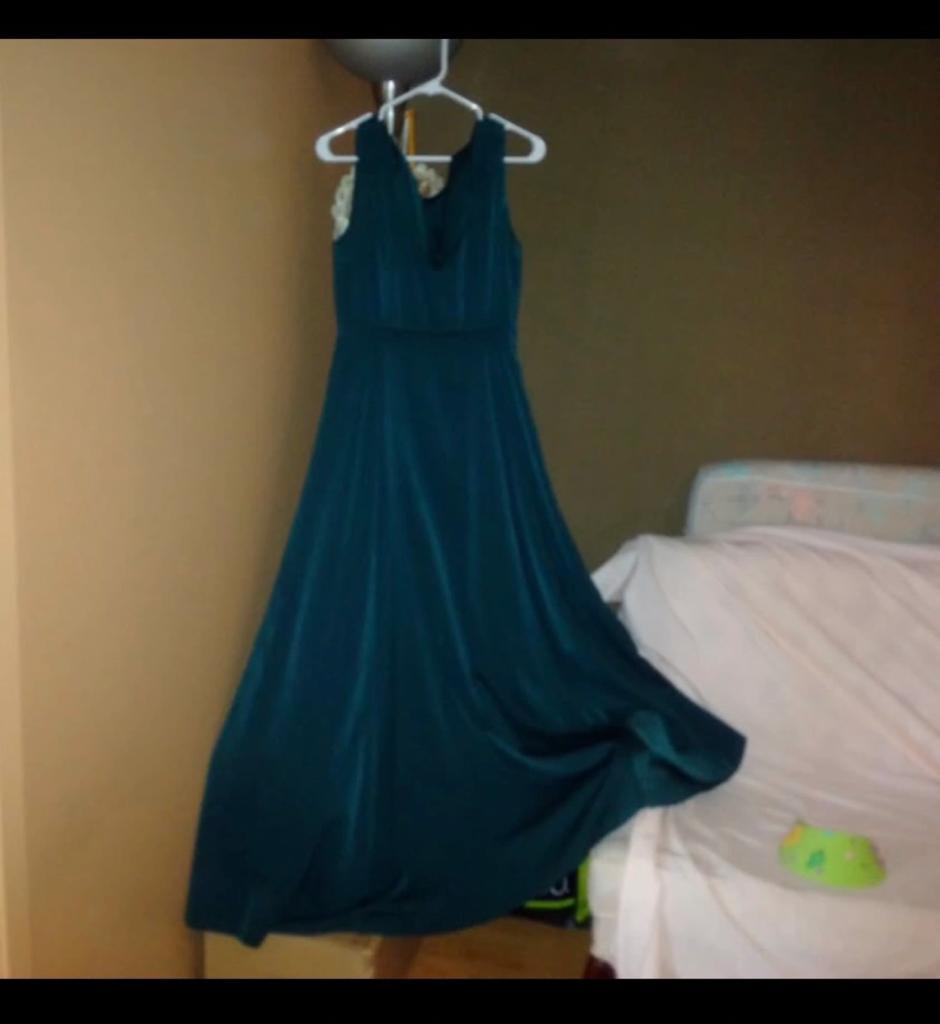 50Beautiful dark teal maxi dress. Sleeveless, V-neck. Flowy, elegant style. Perfect for a special occasion.