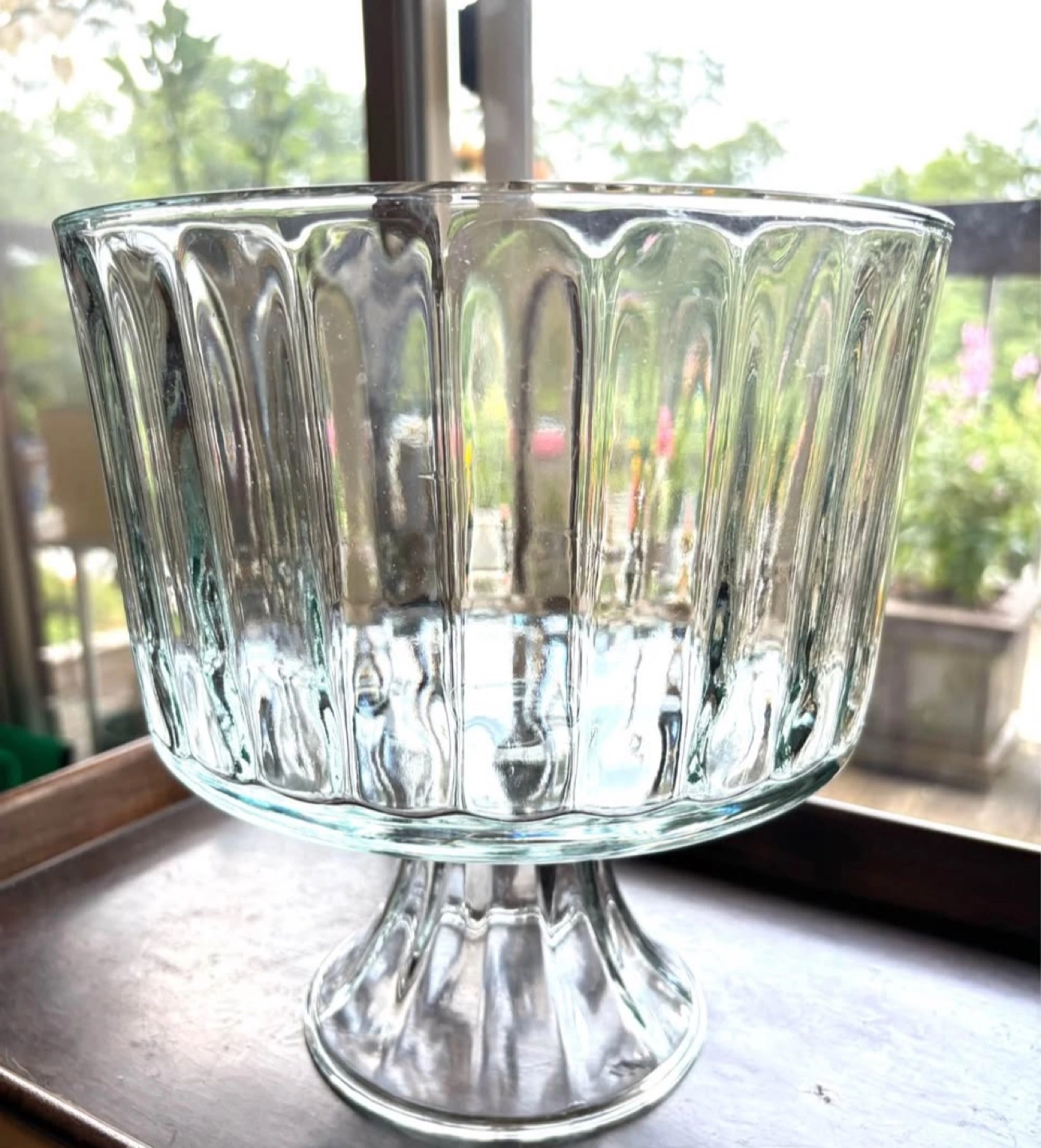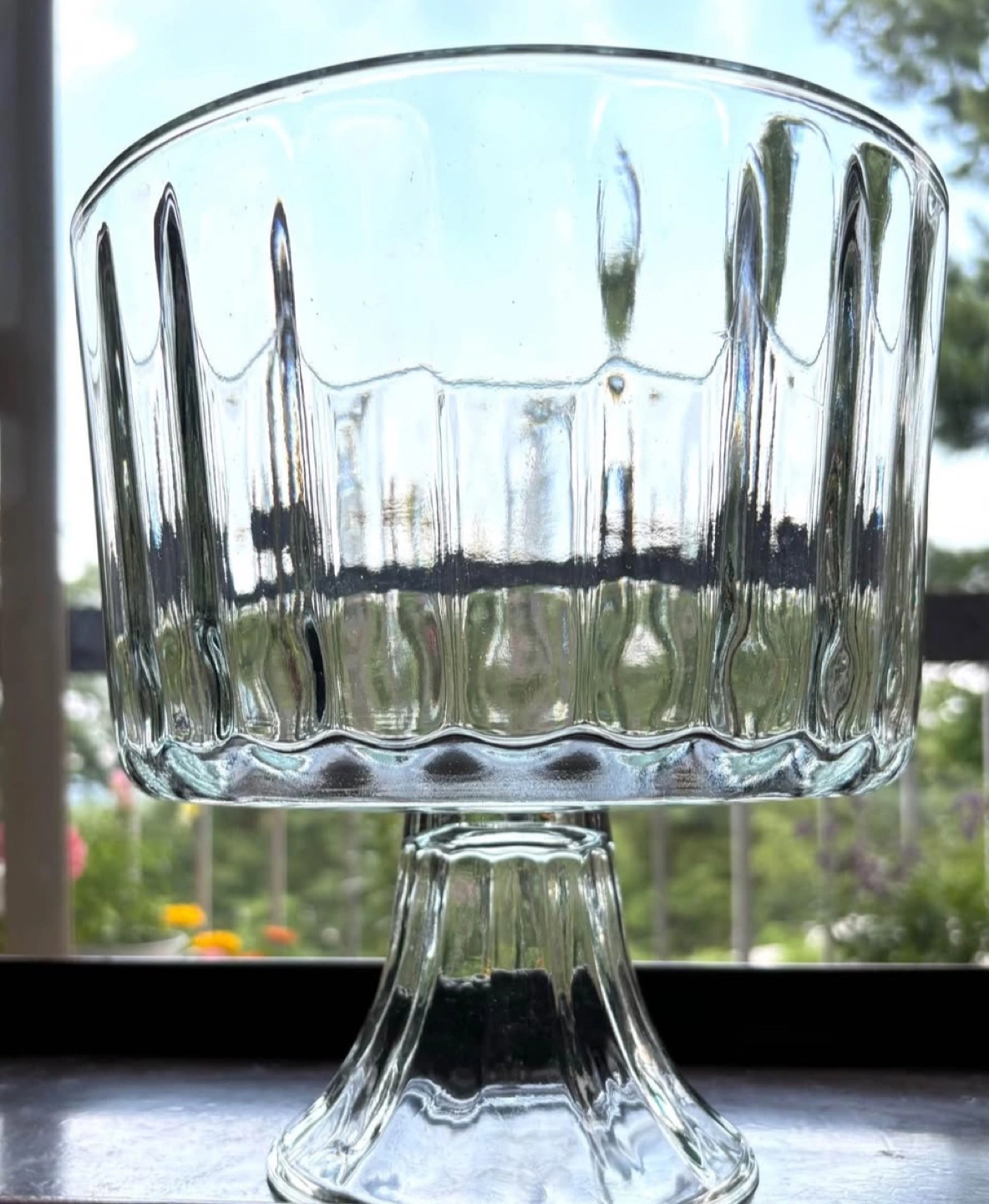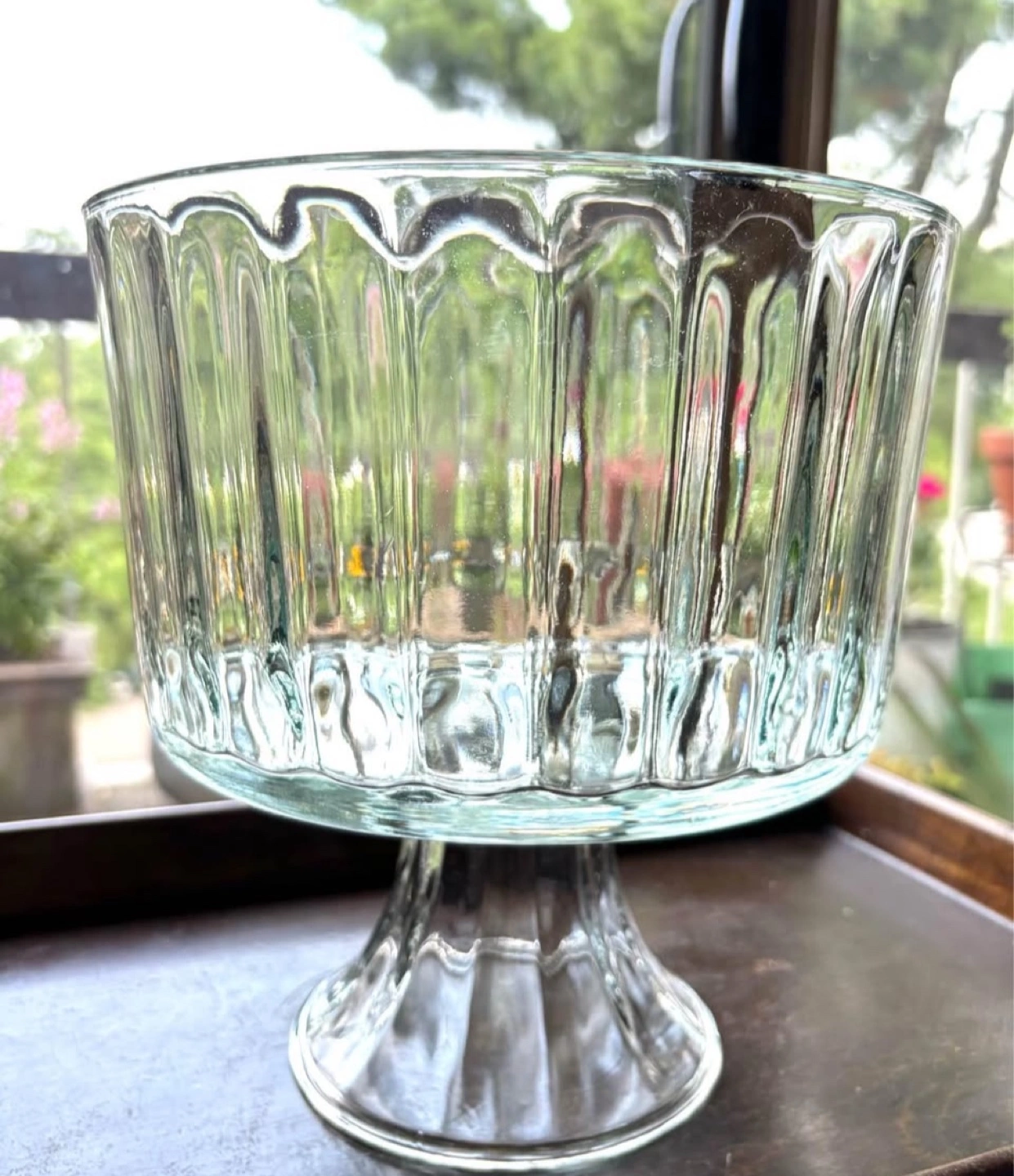 Vintage Heavy Fluted Glass Bowl on Pedestal