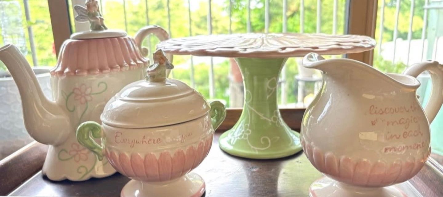 Vintage Fairytale Garden Party Tea Service & Tall Footed Pastry/Cake Plate