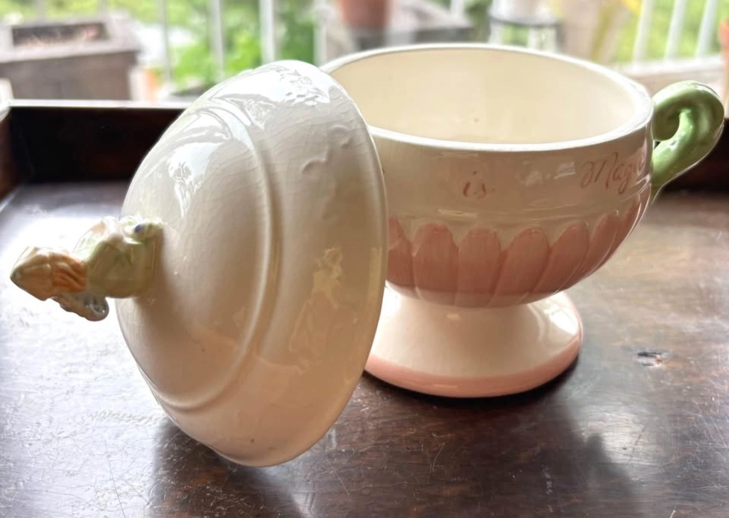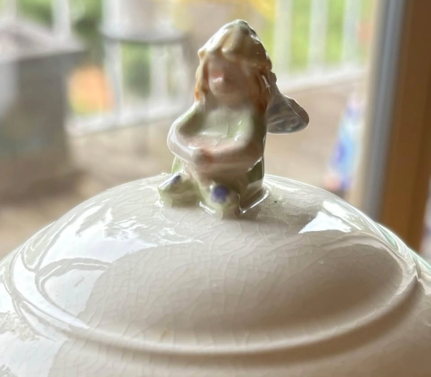 figurines on the teapot and sugar