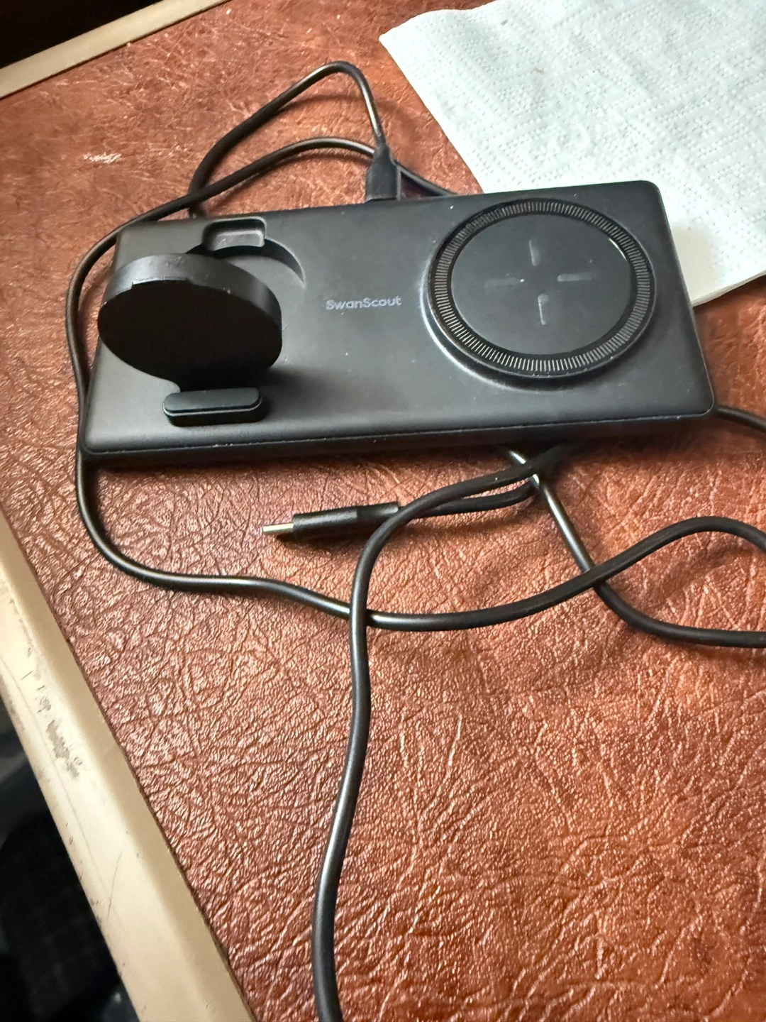 Wireless charger, charges phones and watches simultaneously. Includes USB-C charging cable. Black. Don’t need it anymore