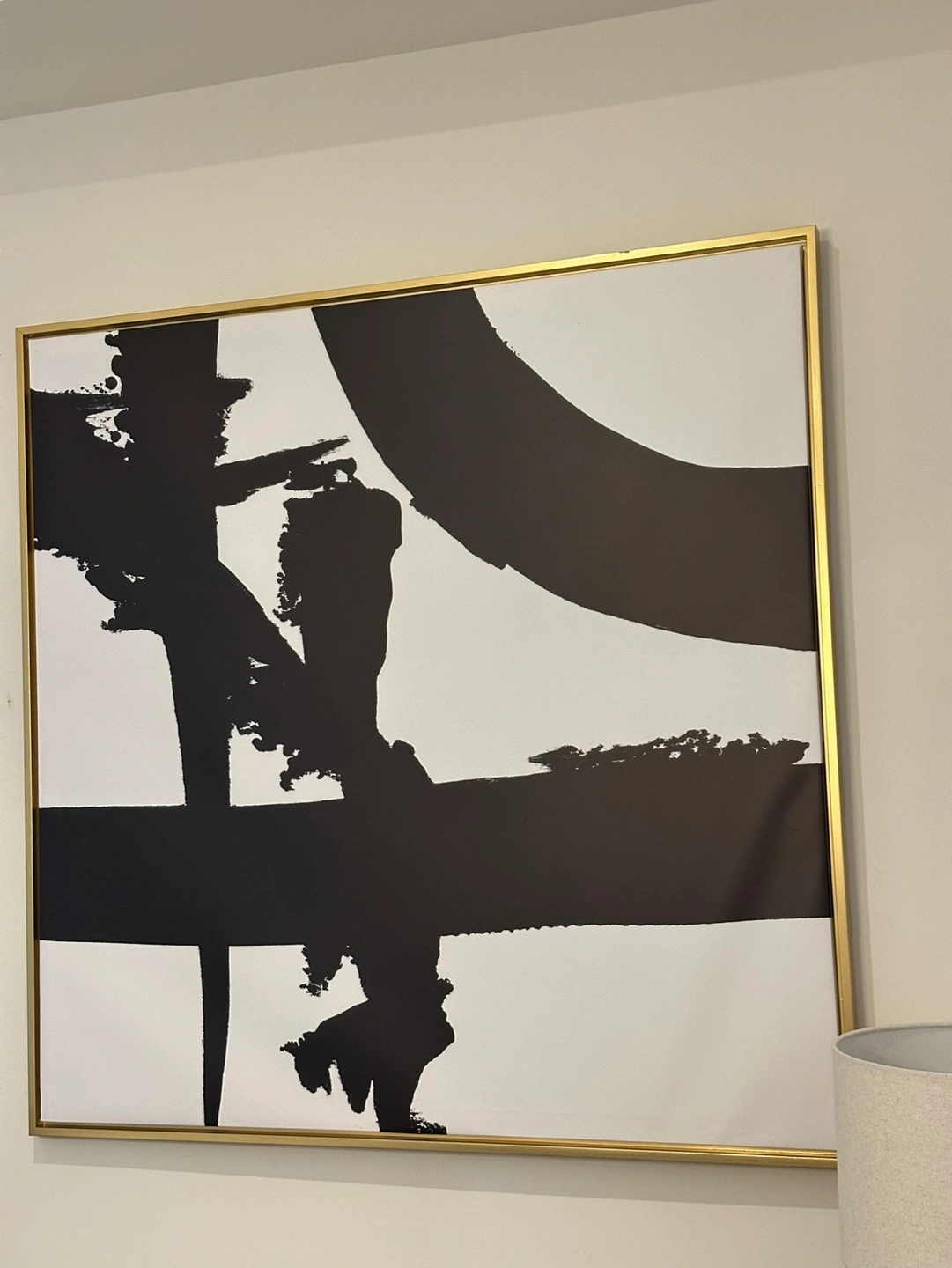 10Brand new and Boxed available.. Modern framed artwork. Black and white abstract design. Gold-coloured frame. Great statement piece for any room. 46x46