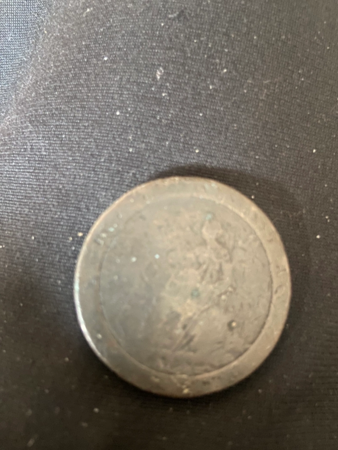 20Old British halfpenny coin. Shows significant wear. Interesting historical artifact. Great for collectors.