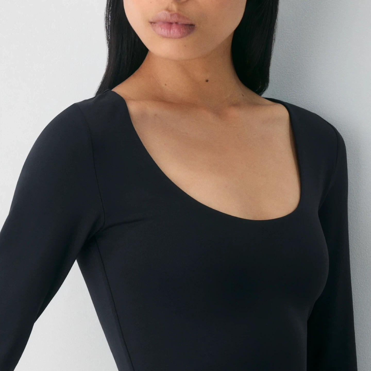 This is a scoopneck longsleeve with double-layer fabric for a supportive fit. It’s made with Aritzia’s Original Contour - luxe, ultra-flattering fabric coveted for its smoothing effect and second-skin feel. Nothing more essential. It's clean and in excellent condition.