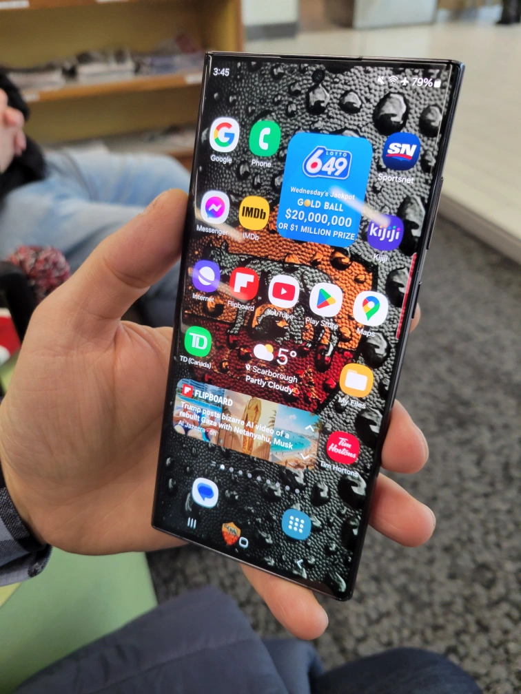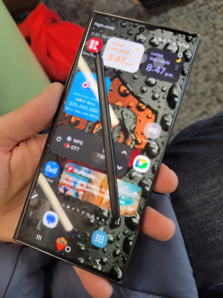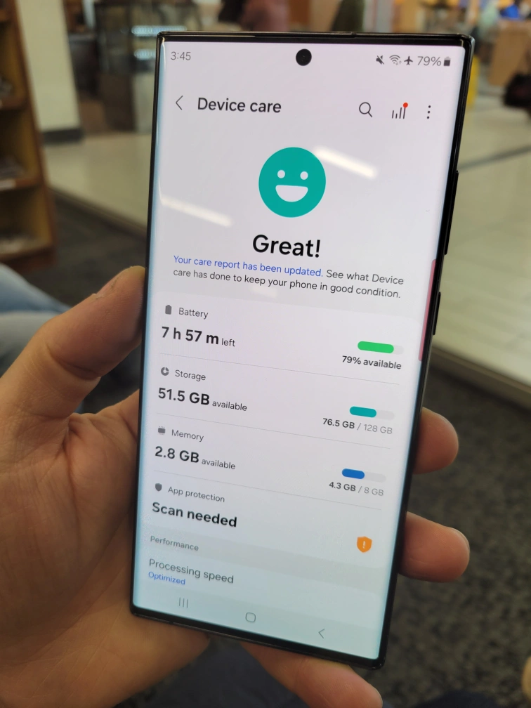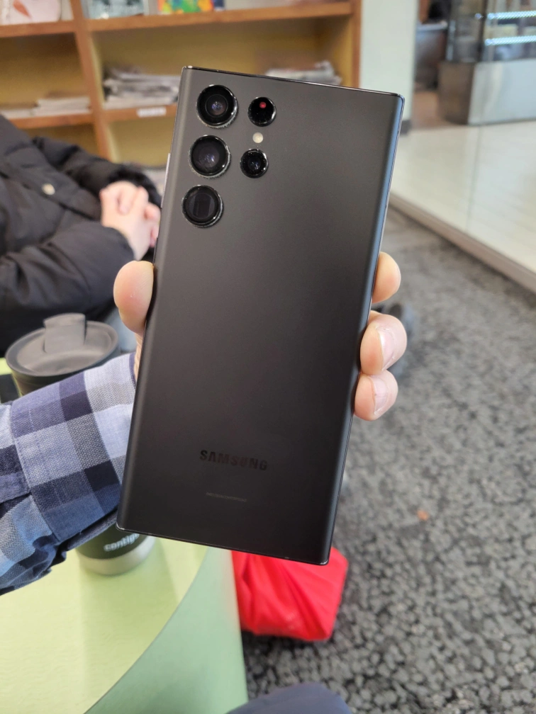 Used Samsung Galaxy S22 Ultra smartphone. 128 GB storage. Black colour. Includes S Pen. comes with charger and original box condition 9.5/10