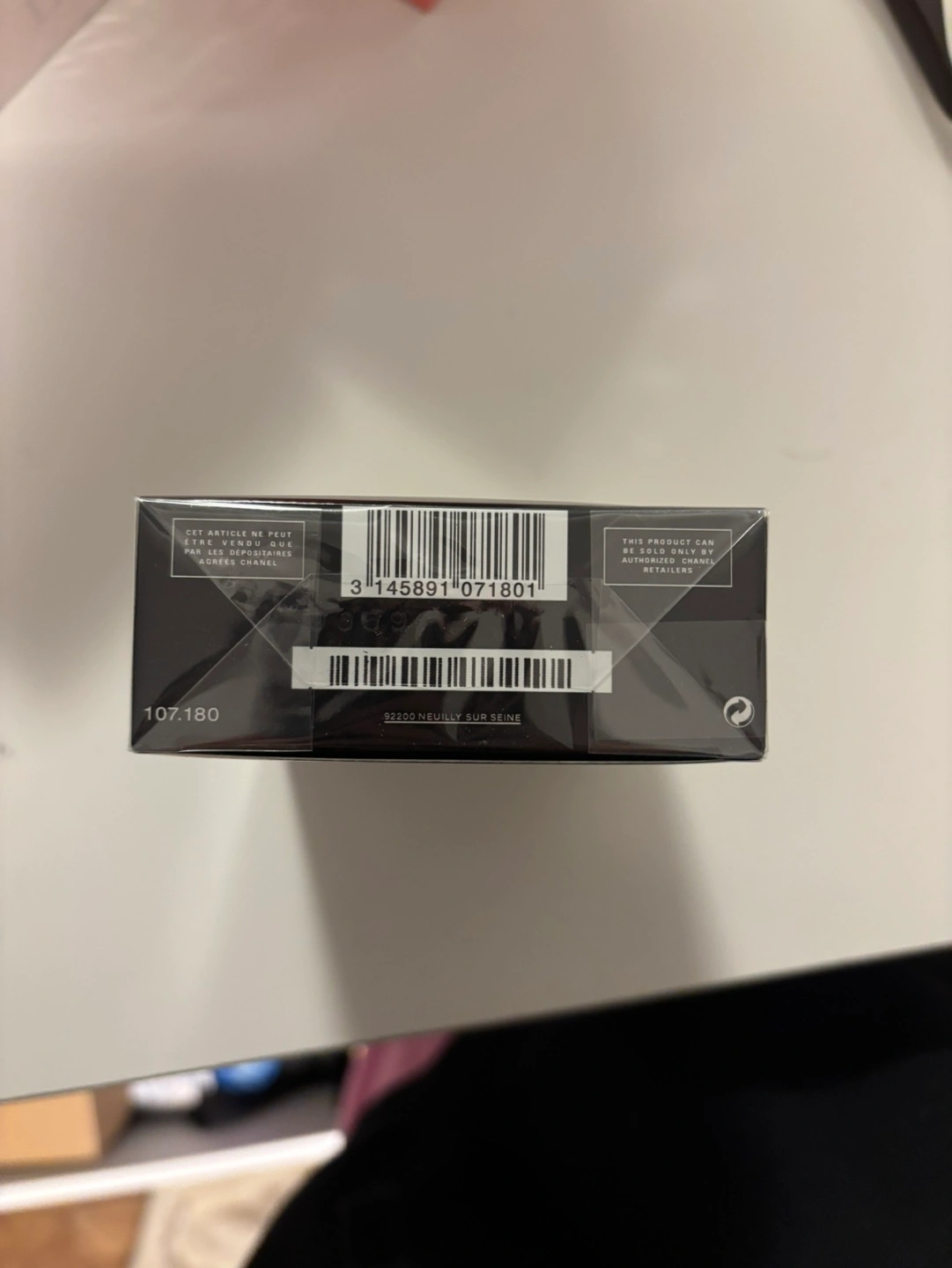 New, unopened box of Bleu De Chanel Parfum Pour Homme. Men's fragrance. Black box with gold lettering. Authentic Chanel product.
