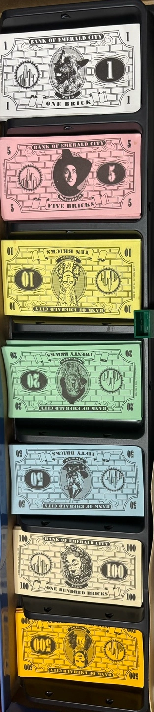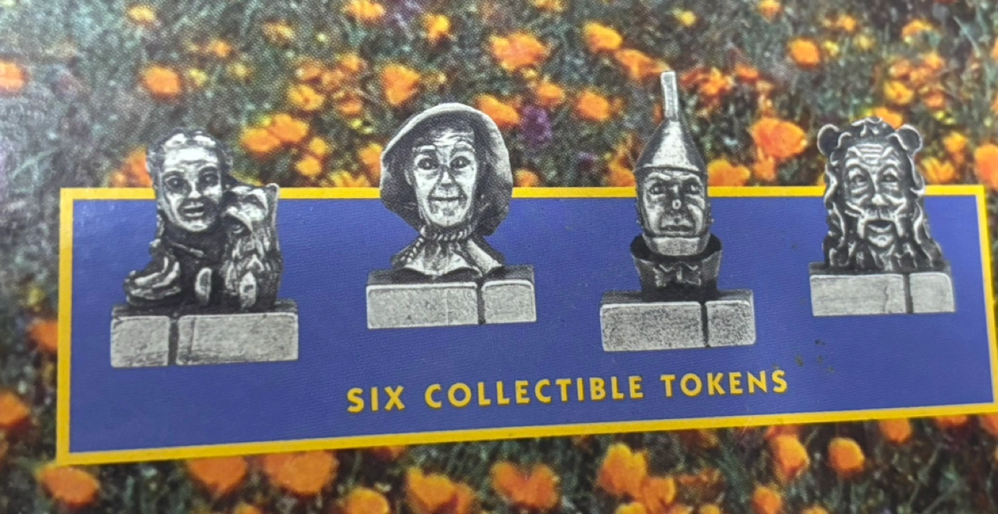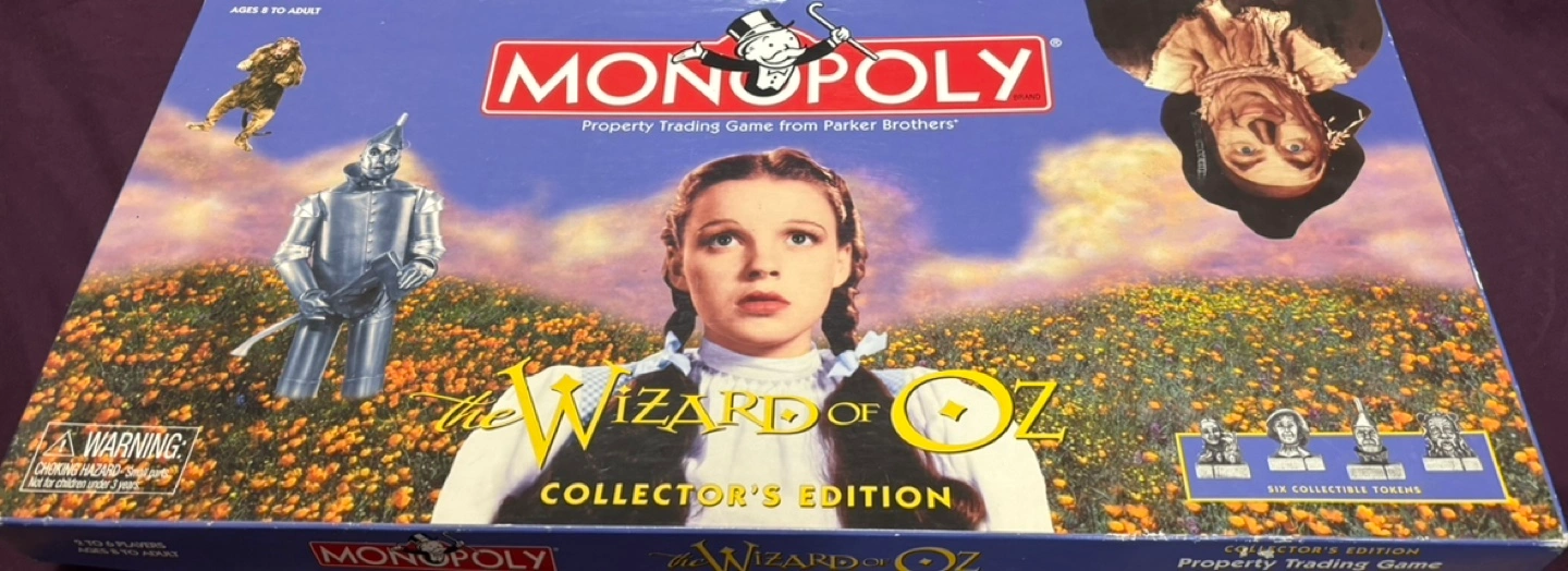 Vintage Collector's Edition Monopoly game. Features Wizard of Oz theme. Includes unique game pieces and money. Six collectible tokens.