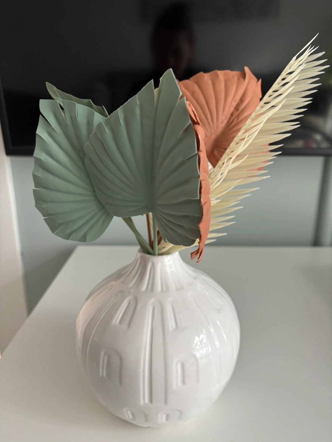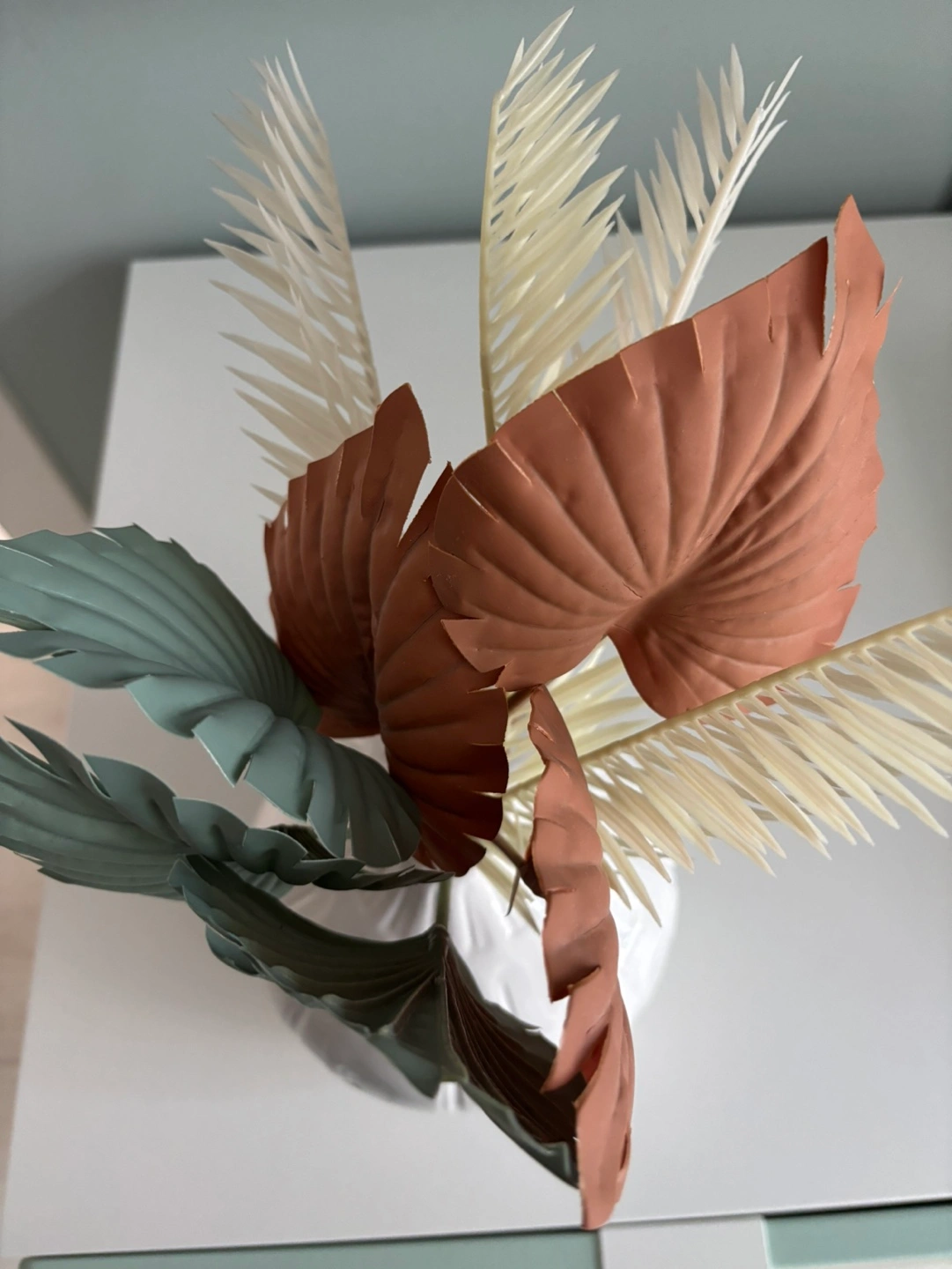 Set of faux tropical leaves and pampas grass. Neutral colour palette. Perfect for home décor. Adds a touch of nature indoors.