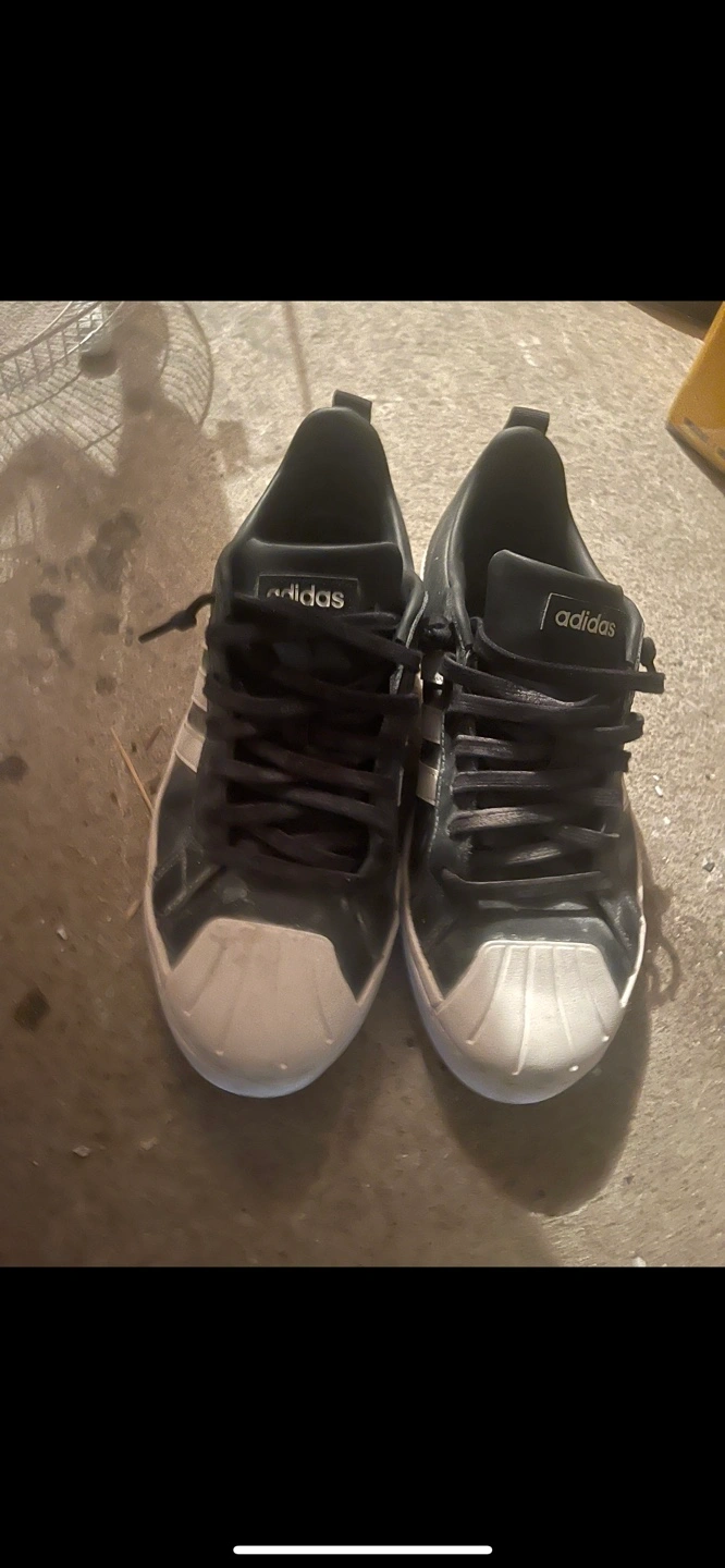 Pre-owned Adidas men's sneakers. Black leather upper, white sole. Lace-up closure. Good condition. Size 9.