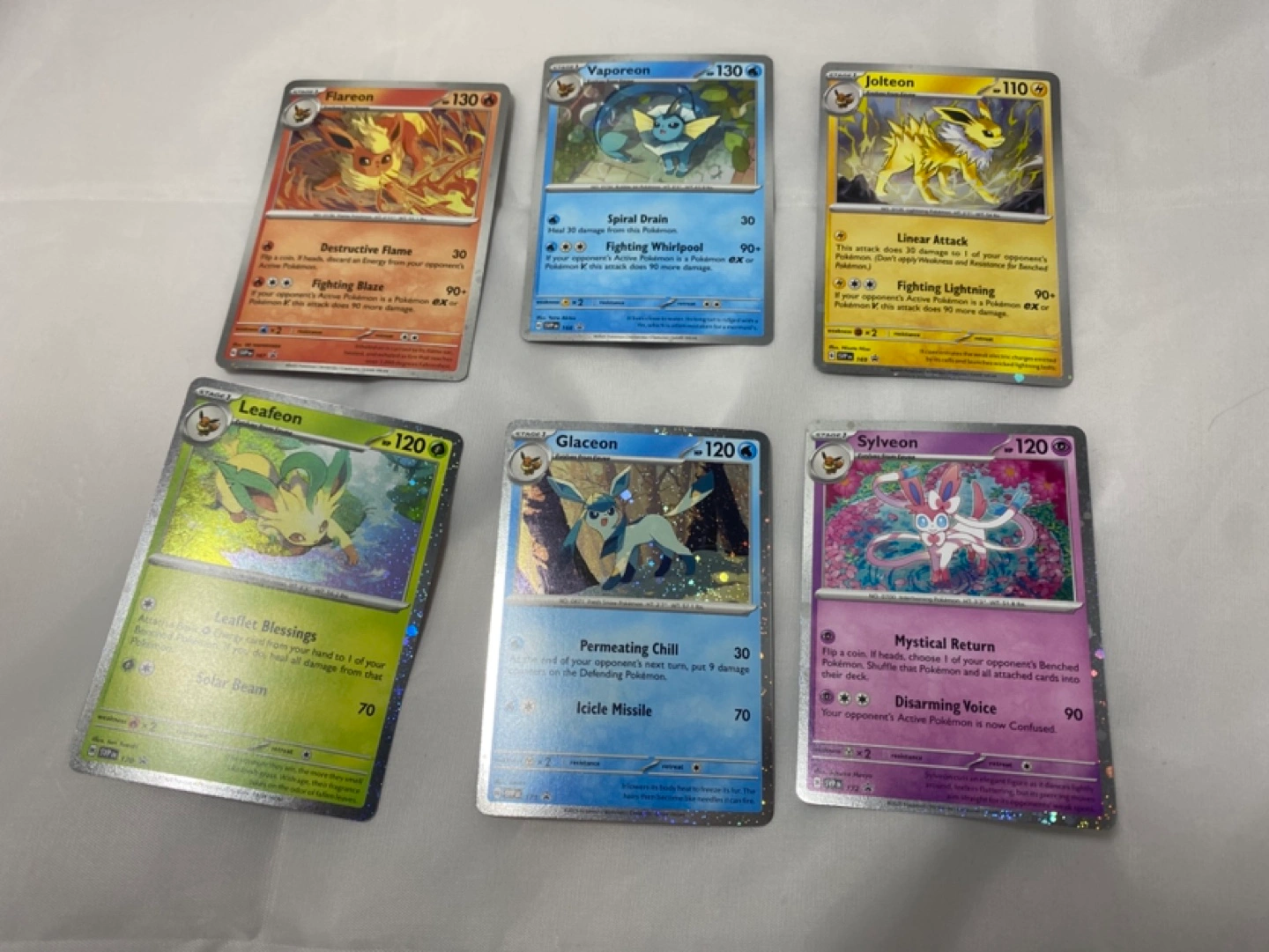 With card numbers SVP 167 through 172, this exclusive promo set offers a unique glimpse into the Evolve stage of these fan-favourite evolutions. These cards are considered Near Mint (NM) by grading standards, ensuring that they have been preserved with care. Perfect for enhancing your gameplay or completing your collection, the Eeveelution Promo Set of 6 is a must-have for enthusiasts of the Pokémon Trading Card Game.
