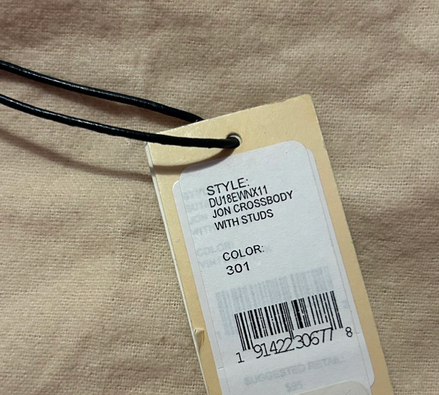 Features silver studs and a long adjustable strap.