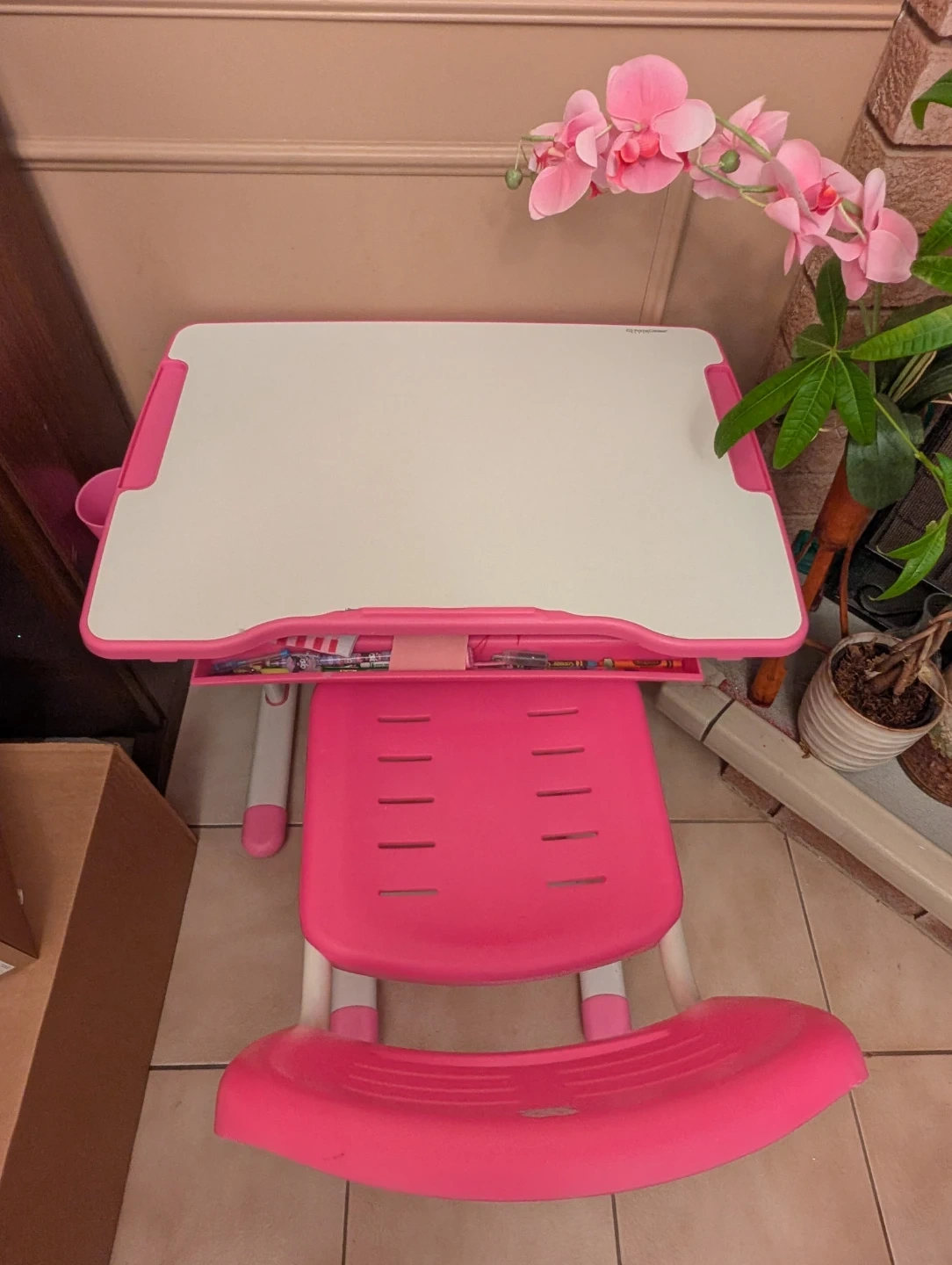 PrimeCables Kids Adjustable Desk and Chair Set Pink