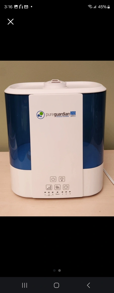 365Used PureGuardian 2.0 Ultrasonic Humidifier. Features multiple mist settings and a timer. Great for dry climates. Discreet blue light.