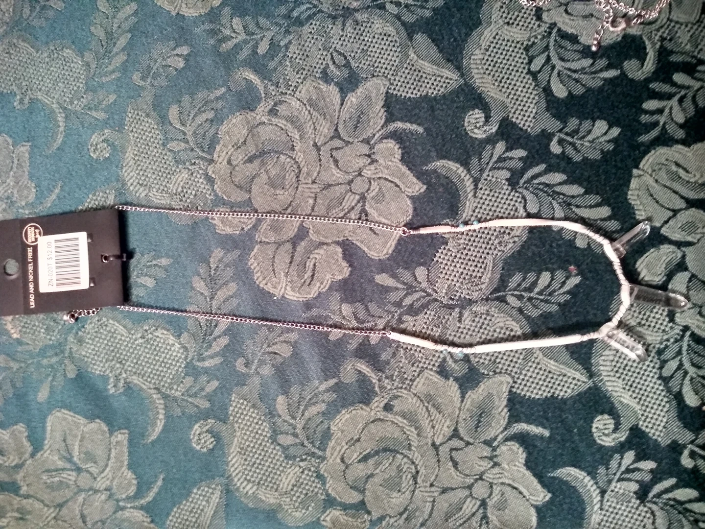 brand new with tags leather and crystal necklace.