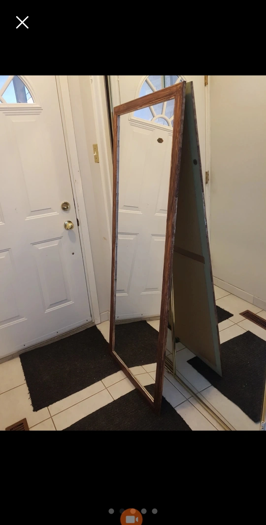 1000+Large framed mirror. Frame is painted brown to match our other furniture but it can easily be removed to be silver again. Measurements: 23.75 x 63.5 inches Smoke-free home! PICK UP ONLY AT KEELE AND FINCH