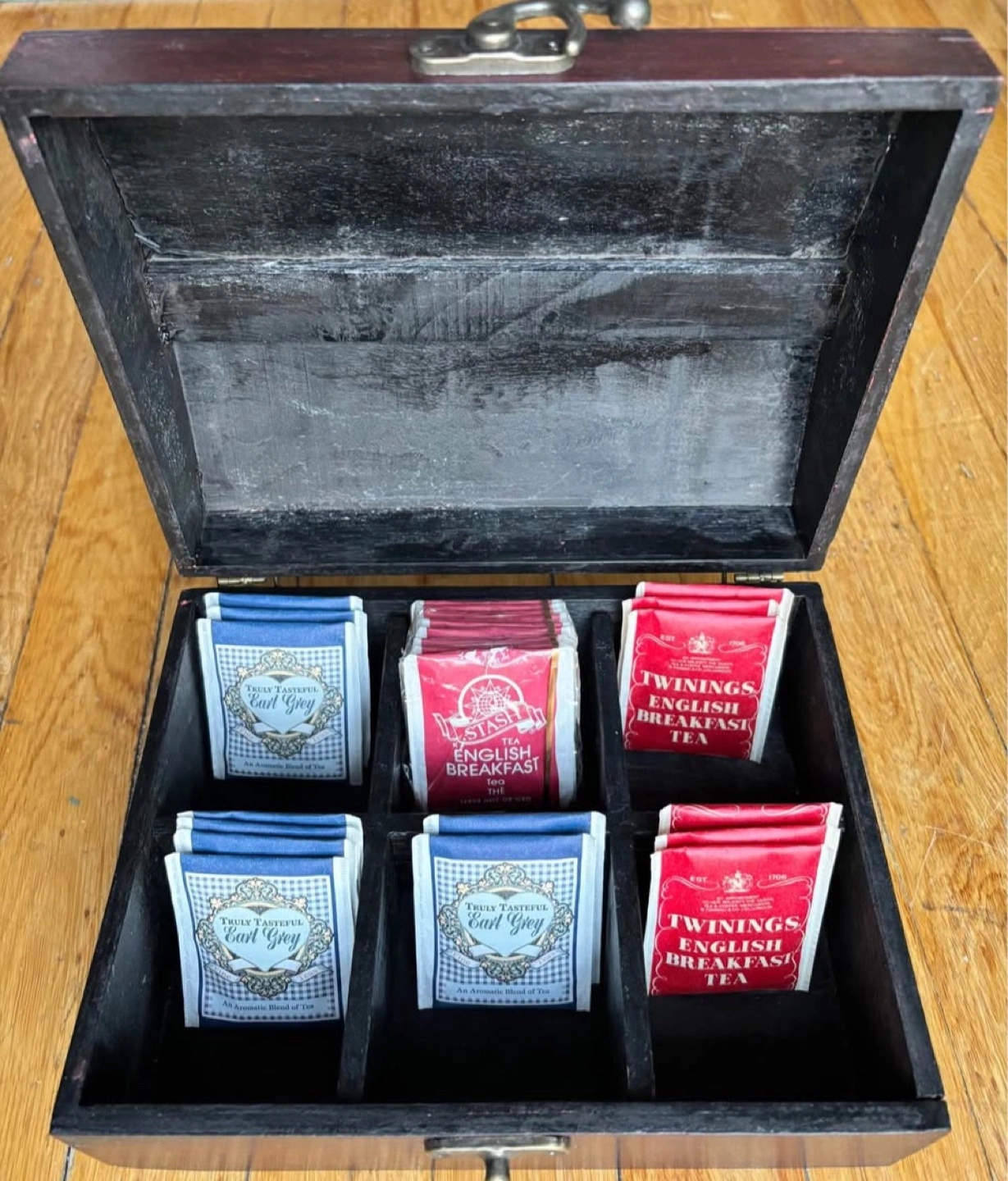 Vintage Wooden Tea Box with 6 Compartments