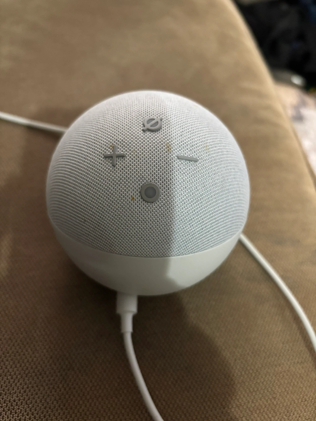 Smart speaker with Alexa. Compact and portable design. Works with other smart home devices. Includes power adapter.