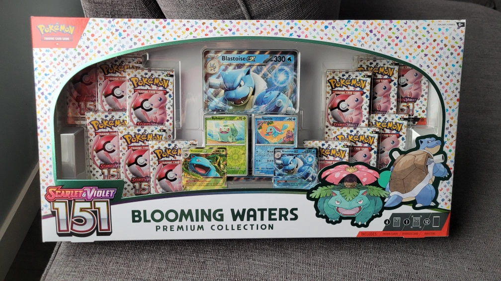 The Pokémon TCG: Blooming Waters Premium Collection includes: