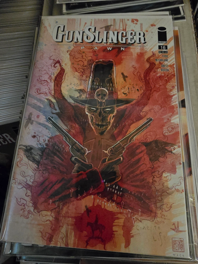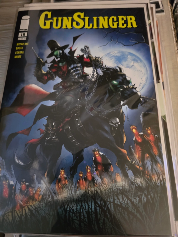 Collection of four Spawn comic books. Includes King Spawn issues #1 and #2, and Gunslinger Spawn issues #16 and #20. All in good condition, bagged and boarded. $3 each