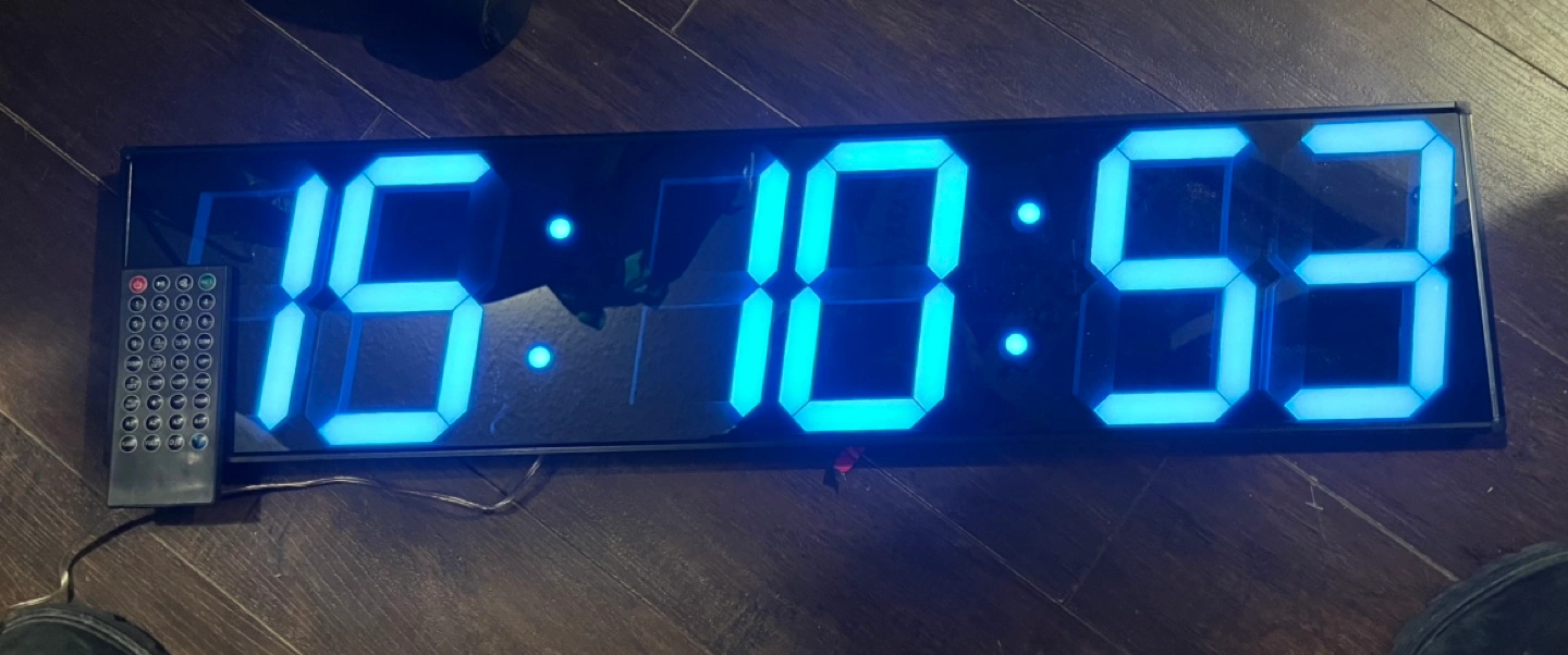 Large oversized 27” LED digital wall clock, comes with Remote control. Has lots of features like auto dim, temperature, date, alarms, timers and much more