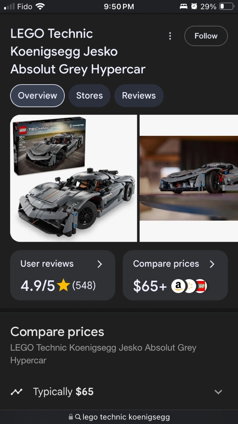 New LEGO Technic Koenigsegg Jesko Absolut Hypercar. 801 pieces. Grey colour scheme. 10+ age recommendation. Detailed model. Collector's item.