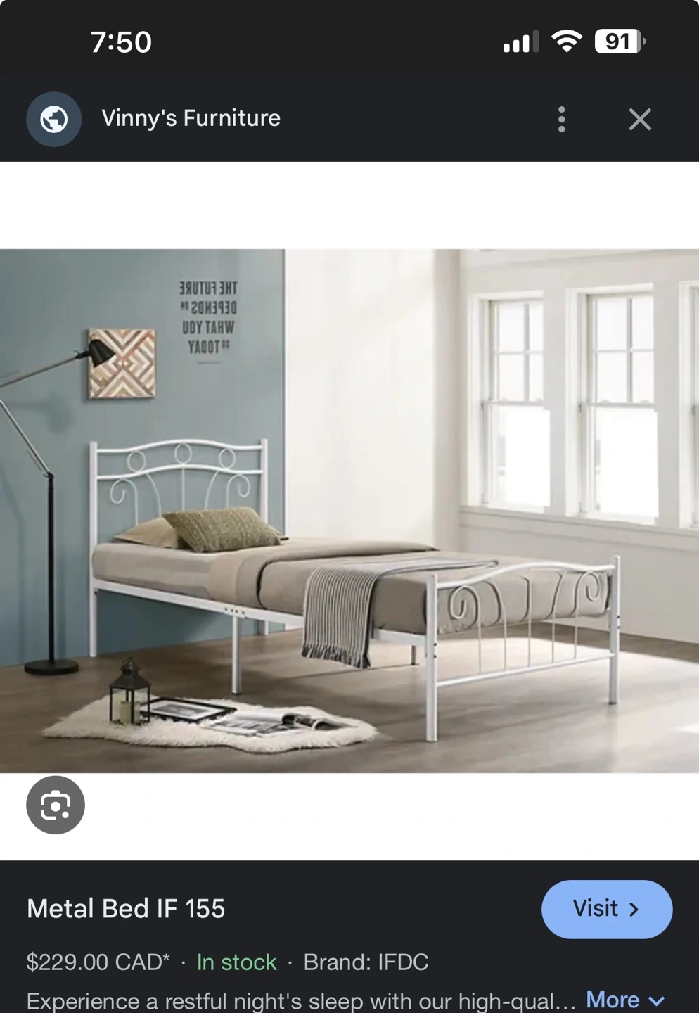 473 Single bed. Metal construction. White finish. Elegant scrollwork design. Great for a child's room or small space. You can buy one or two or even three it’s up to you, but I have 3 pieces available, it’s really good for kids and adults. Each FOR 100