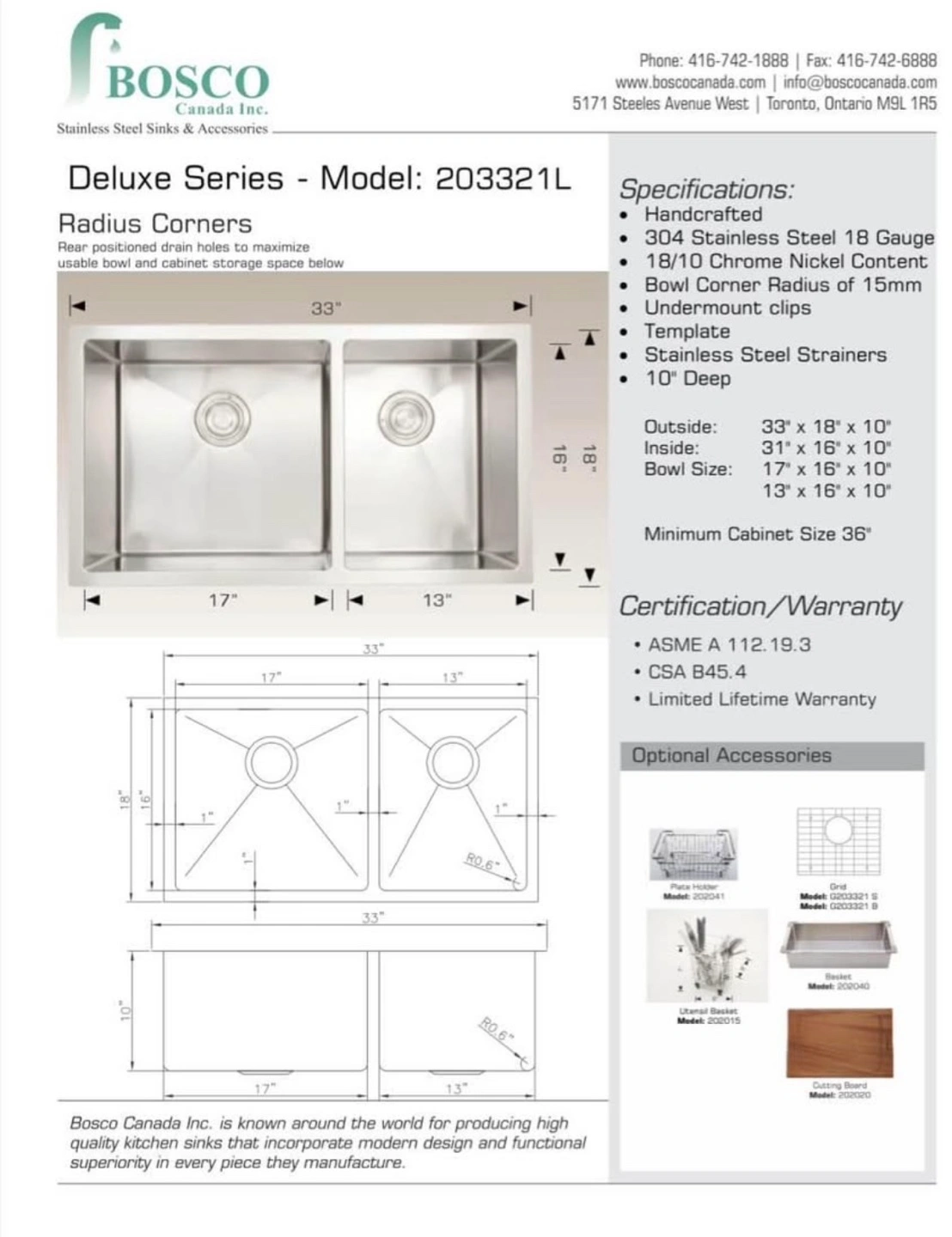 Bosco Radius Deluxe Series Double Kitchen Sink - Model 20332L