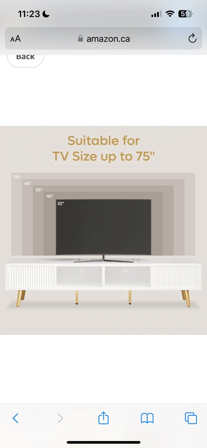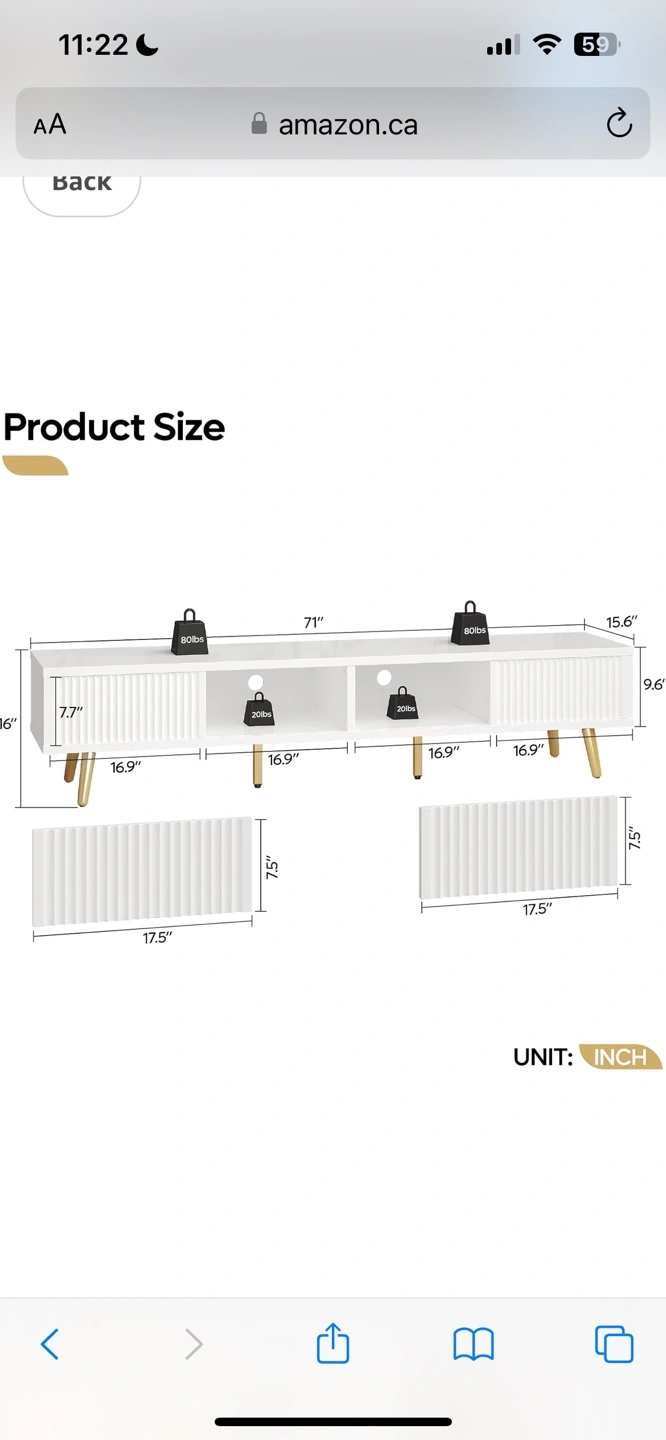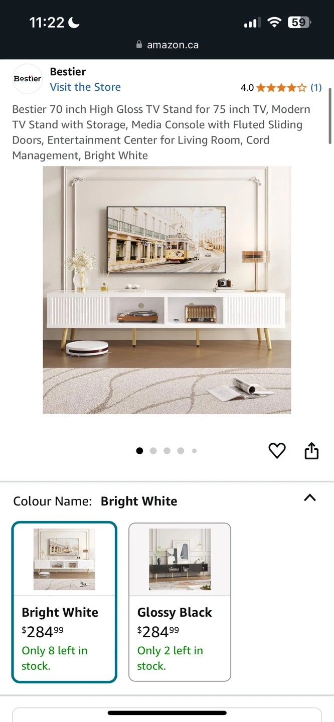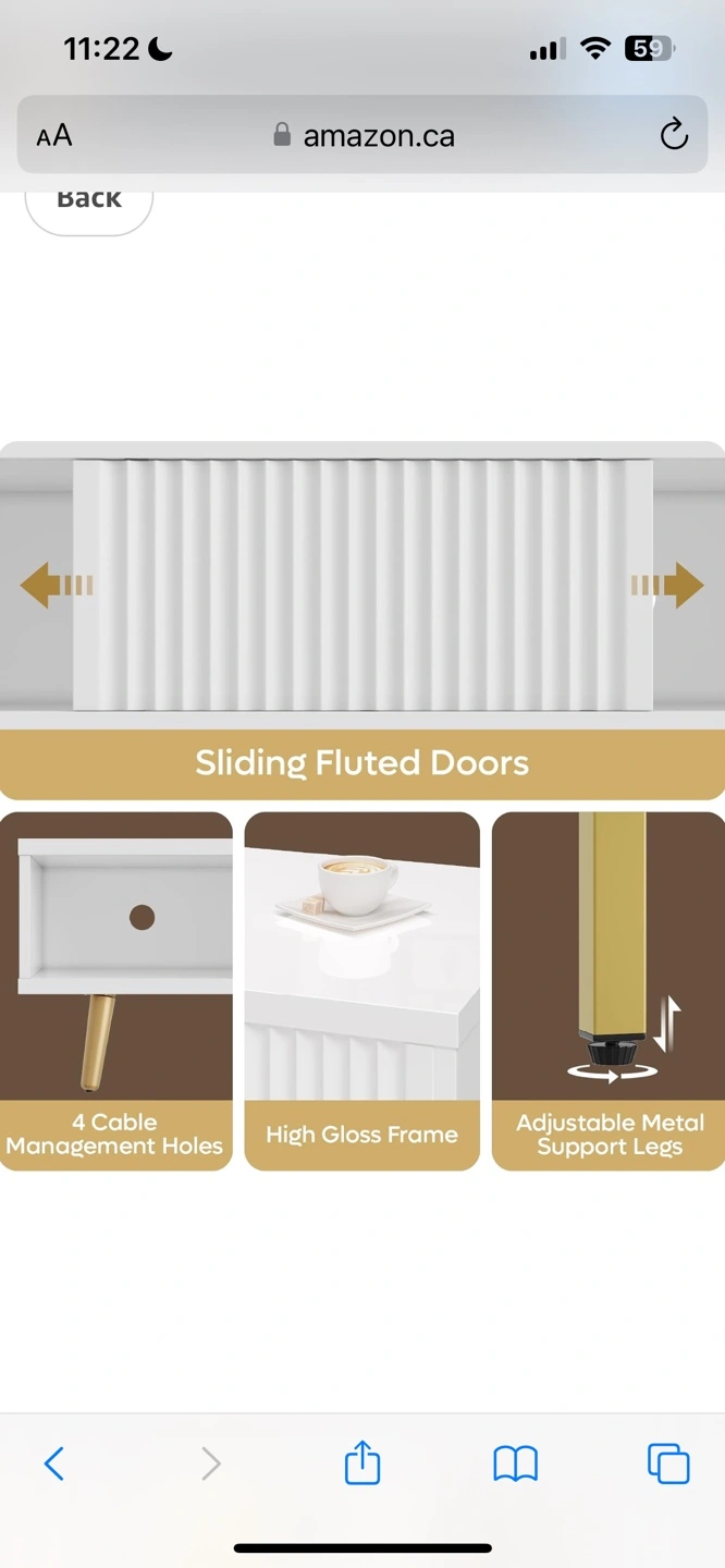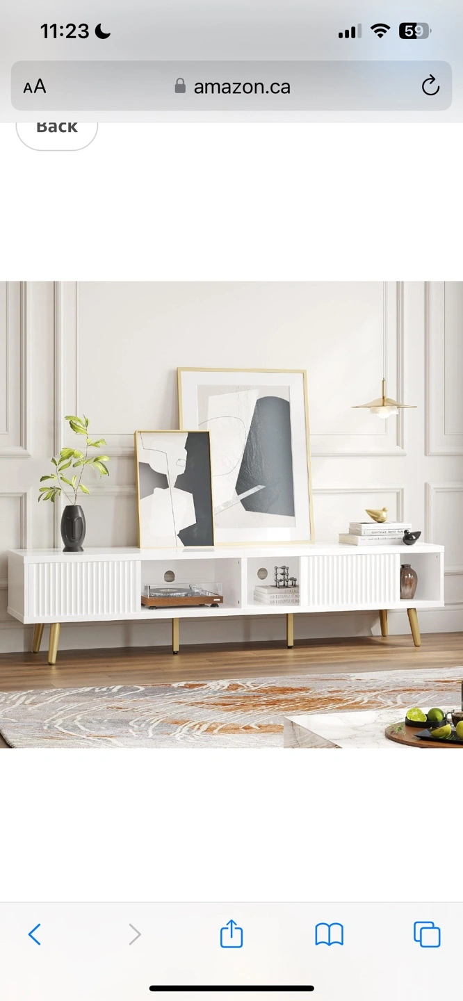 70 inch high gloss TV stand. Modern design. Fluted sliding doors. Storage. Media console. Cord management. Adjustable metal legs. Suitable for TVs up to 75 inches.