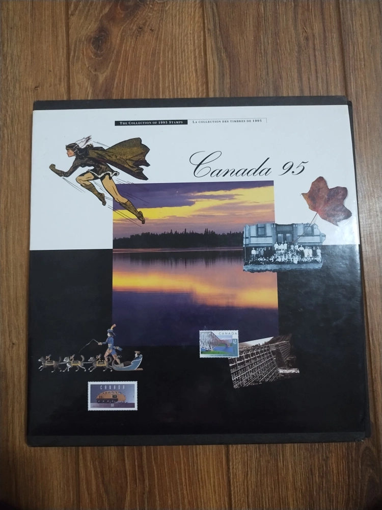 Complete album showcasing Canada's 1995 stamp collection. Features images and descriptions of each stamp. Album in good condition. Perfect for philatelists or collectors.