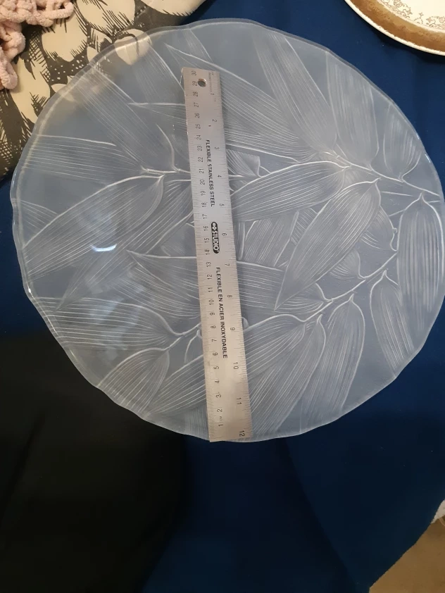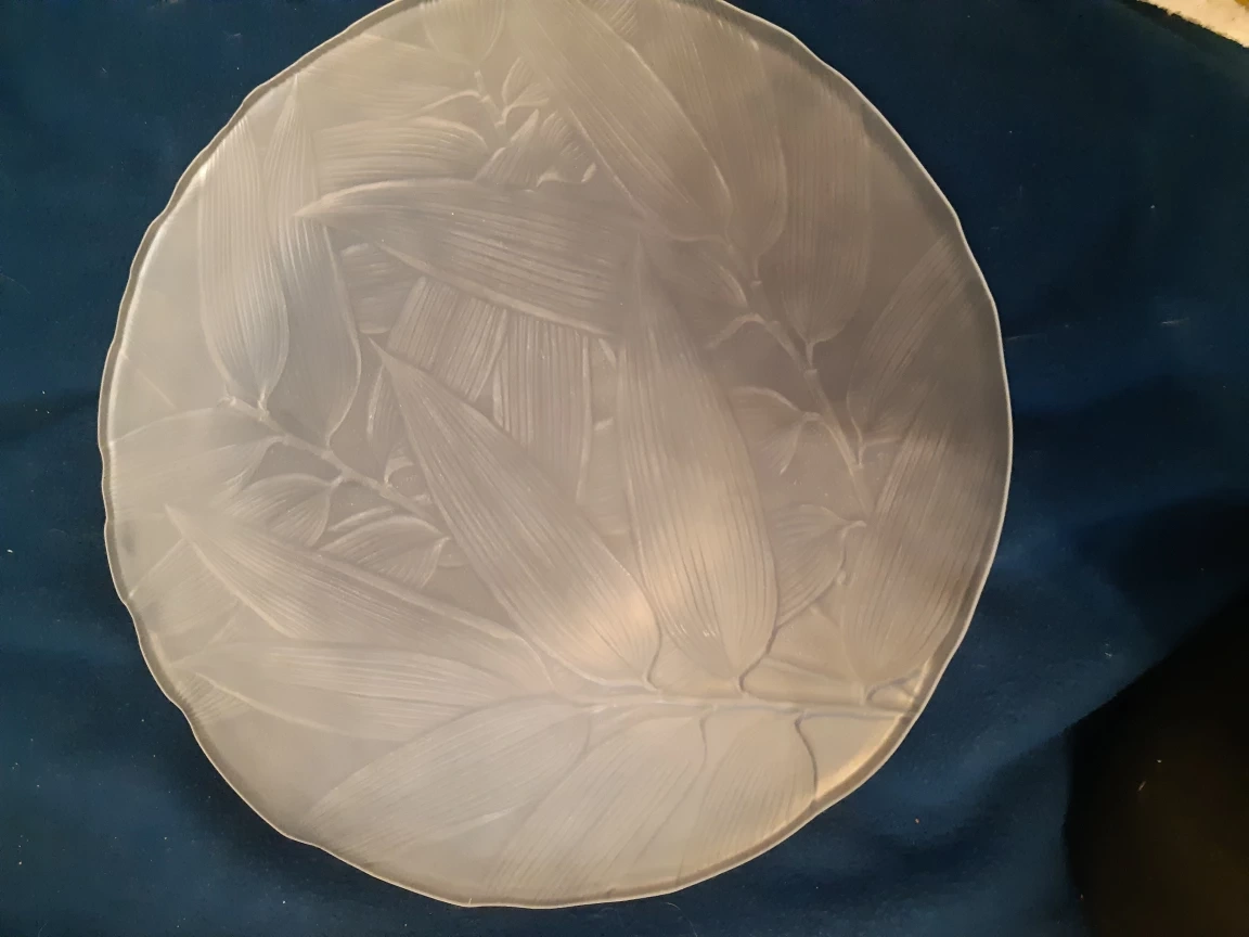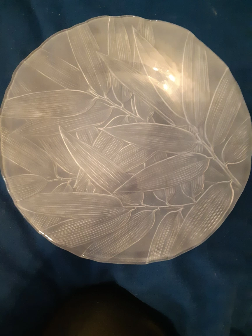 Studio Nova Arctic Palm platter. 14 inches. Frosted glass. Palm leaf design. New in box. never used!!