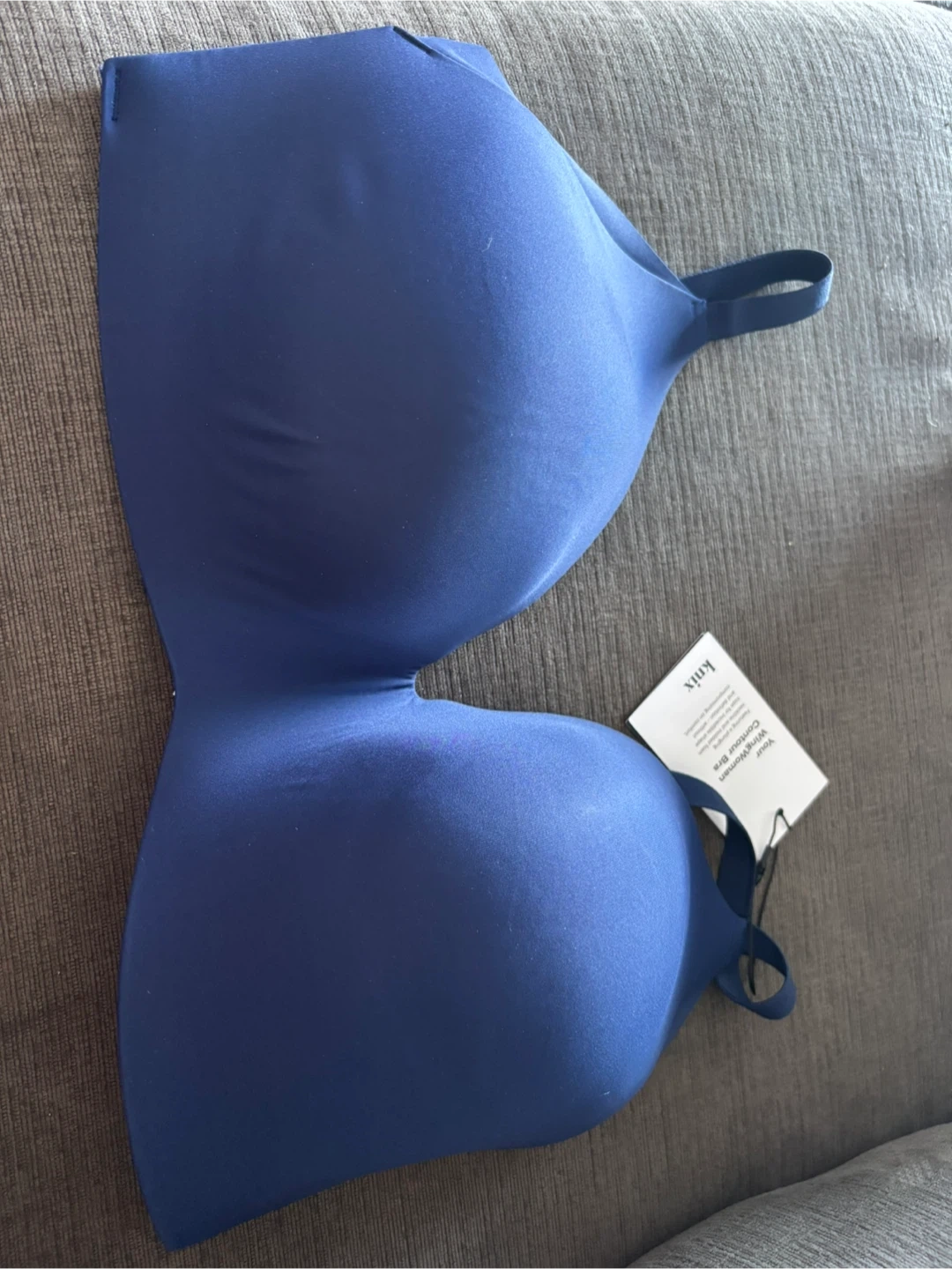 Knix WingWoman Contour Bra in Midnight Blue, size 8. It features molded foam cups and wireless comfort. Side coverage is designed for a smooth shape. It's great for everyday wear!
