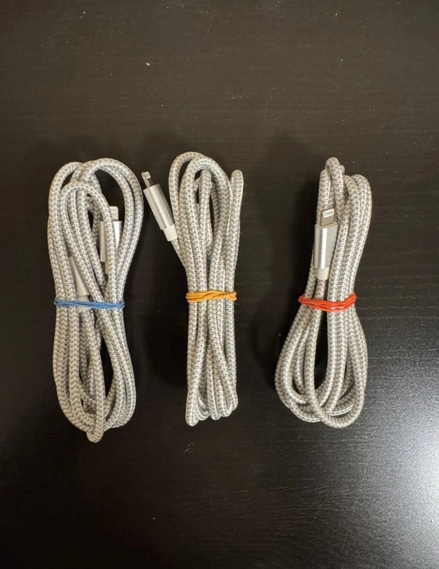 - 3x 6 foot braided lightning to USB-C chargers
